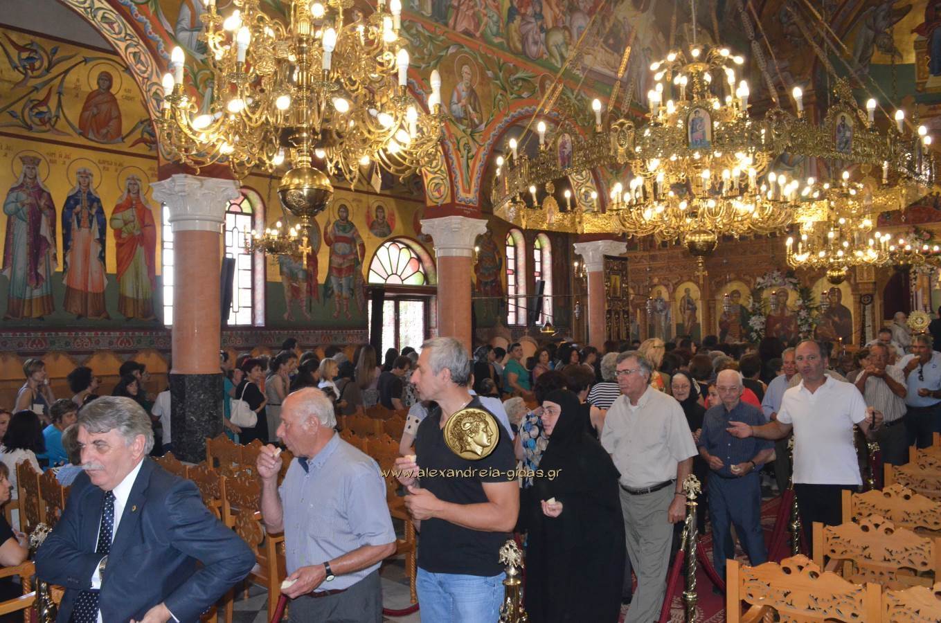 Το πρωί στην Αγία Κυριακή βρέθηκε πλήθος κόσμου. Ανάμεσά τους ο βουλευτής Ημαθίας της Νέας Δημοκρατίας Απόστολος Βεσυρόπουλος, ο δήμαρχος Αλεξάνδρειας Παναγιώτης Γκυρίνης, ο αντιπεριφερειάρχης Κώστας Καλαϊτζίδης, ο Αστυνομικός Διευθυντής Ημαθίας Γιώργος Τουλίκας, ο πρόεδρος της Δημοτικής Ενότητας Αλεξάνδρειας Μενέλαος Λυμπεράκης, ο Διοικητής της Πυροσβεστικής Υπηρεσίας Γιάννης Αμανατίδης και ο Διοικητής του Α.Τ. Αλεξάνδρειας Γιώργος Μύρισας.