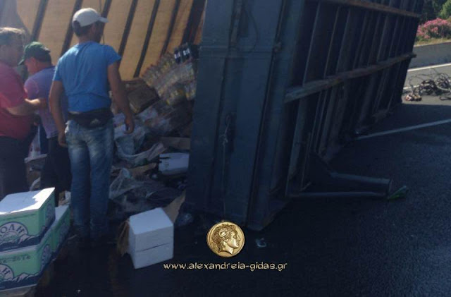Φορτηγό για άγνωστους λόγους ανετράπη και ευτυχώς σημειώθηκαν όπως αναφέρουν οι πρώτες πληροφορίες μόνο υλικές ζημιές.