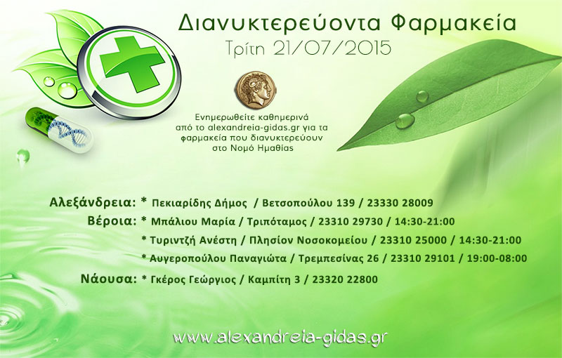 Εφημερεύοντα – διανυκτερεύοντα φαρμακεία Ημαθίας Τρίτη 21 Ιουλίου