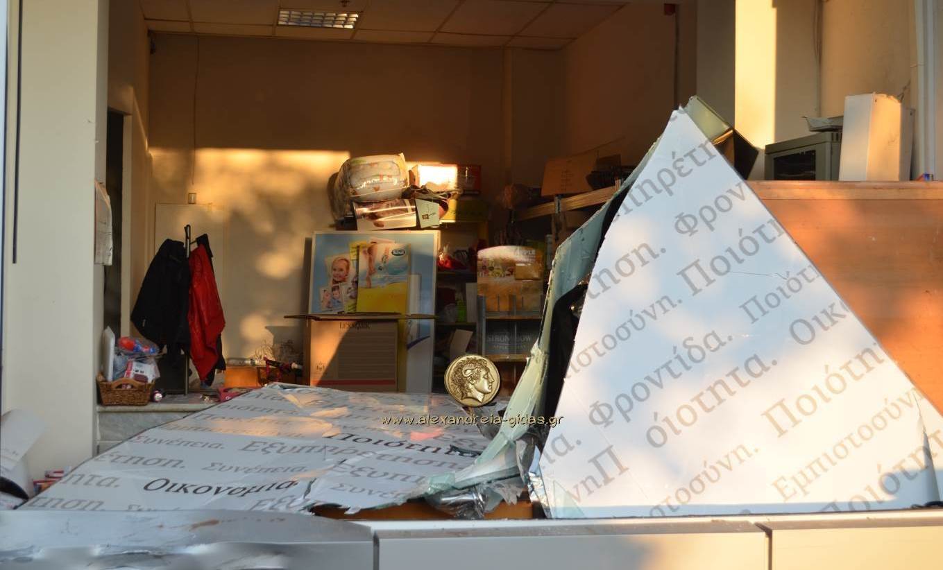 Στο σημείο βρίσκεται η Ασφάλεια της Αλεξάνδρειας η οποία ερευνά το θέμα ενώ οι δράστες αναζητούνται.