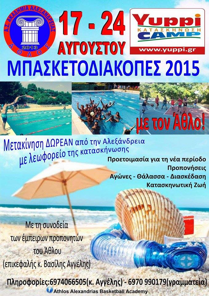 Μετά το άκρως επιτυχημένο Summer Camp που πραγματοποιήθηκε από τον ΑΘΛΟ Αλεξάνδρειας το πρώτο δεκαήμερο του Ιουλίου στις εγκαταστάσεις του 2ου Γυμνασίου Αλεξάνδρειας η Ακαδημία που έχει φέρει πολλές καινοτόμες δράσεις στο χώρο του αθλητισμού της πόλης μας, παρουσιάζει για δεύτερη συνεχόμενη χρονιά το πρόγραμμα “Μπάσκετοδιακοπές με τον Άθλο” σε συνεργασία με την μεγάλη κατασκήνωση Yuppi Camp στην Κρυοπηγή Χαλκιδικής.