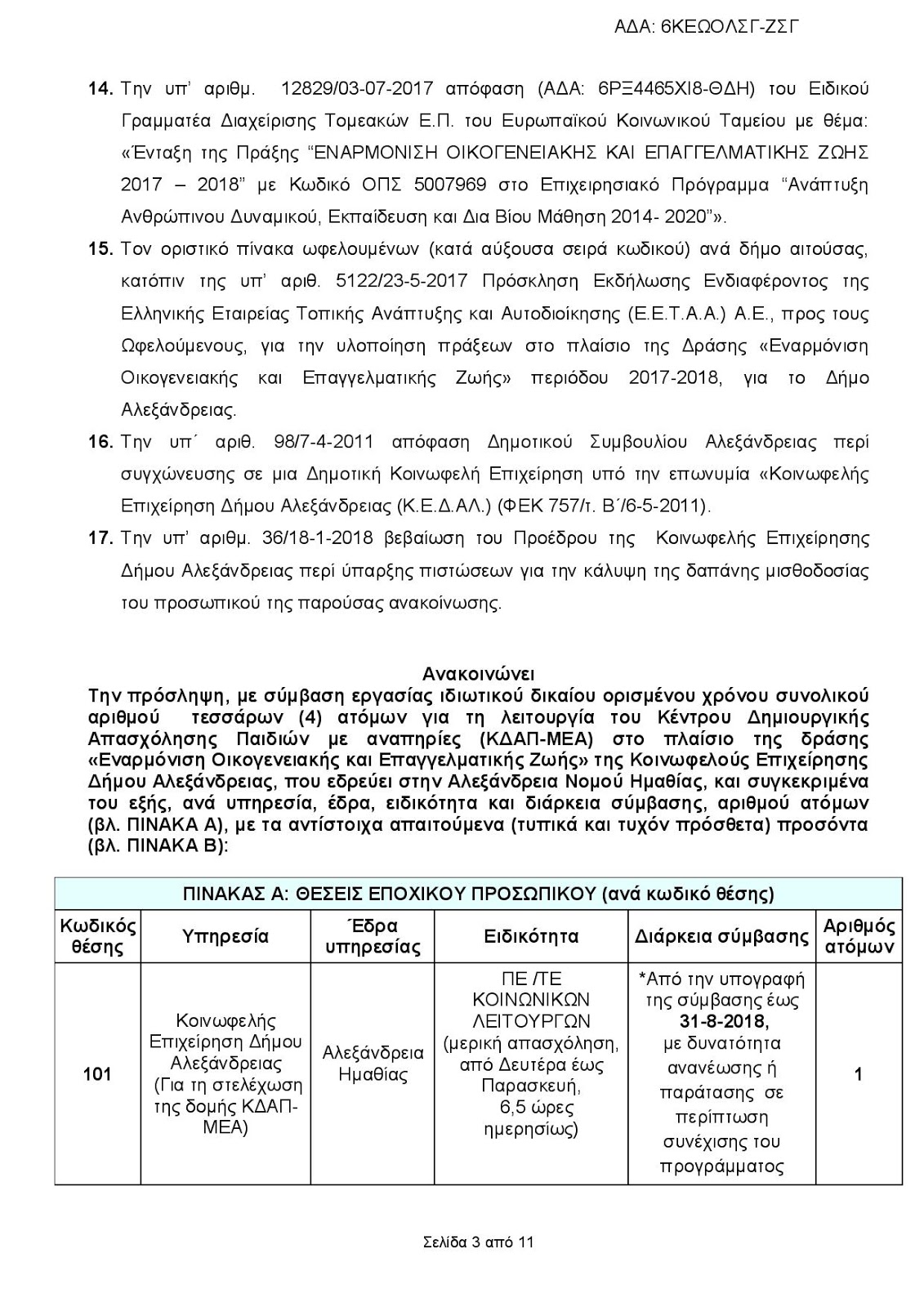 ΕΡΓΑΣΙΑ 14 Φεβρουαρίου, 2018 posted by admin Share Ακόμα 4 προσλήψεις στην Κ.Ε.Δ. Αλεξάνδρειας – από σήμερα οι αιτήσεις (προκήρυξη) Το πρωί γράψαμε σχετικά με τις προσλήψεις που θα κάνει η Κοινωφελής Επιχείρηση του δήμου Αλεξάνδρειας (κλικ ΕΔΩ). Οι επιχείρηση ανακοίνωσε και 4 προσλήψεις ακόμα. Δείτε την προκήρυξη παρακάτω: Αφήστε μια απάντηση Ακύρωση απάντησηςΗ ηλ. διεύθυνση σας δεν δημοσιεύεται. Τα υποχρεωτικά πεδία σημειώνονται με *Σχόλιο * Όνομα Email Ιστότοπος Αποθήκευσε το όνομά μου, email, και τον ιστότοπο μου σε αυτόν τον πλοηγό για την επόμενη φορά που θα σχολιάσω.
