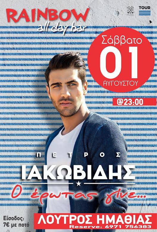 ΜΟΥΣΙΚΗ 27 Ιουλίου, 2015 posted by admin Share Τον Πέτρο Ιακωβίδη παρουσιάζει το Σάββατο το RAINBOW στον Λουτρό! Το All Day Bar RAINBOW στον Λουτρό παρουσιάζει το Σάββατο 1 Αυγούστου τον Πέτρο Ιακωβίδη για μία και μοναδική βραδιά! Η έναρξη είναι στις 23:00 και η είσοδος… 7 ευρώ μαζί με ποτό! Τηλέφωνο για κρατήσεις: 6971756383 Αφήστε μια απάντηση Ακύρωση απάντησηςΗ ηλ. διεύθυνση σας δεν δημοσιεύεται. Τα υποχρεωτικά πεδία σημειώνονται με *Σχόλιο * Όνομα Email Ιστότοπος Αποθήκευσε το όνομά μου, email, και τον ιστότοπο μου σε αυτόν τον πλοηγό για την επόμενη φορά που θα σχολιάσω.