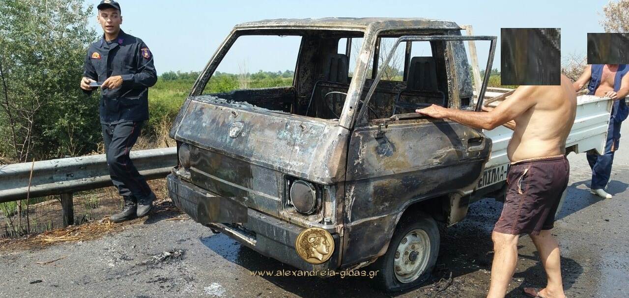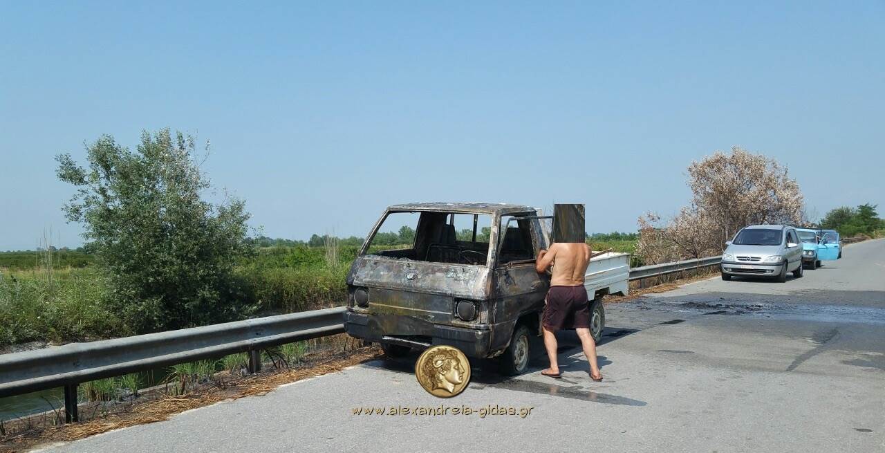 Πριν λίγο: Φωτιά σε φορτηγάκι έξω από τον Λουτρό (φωτορεπορτάζ)