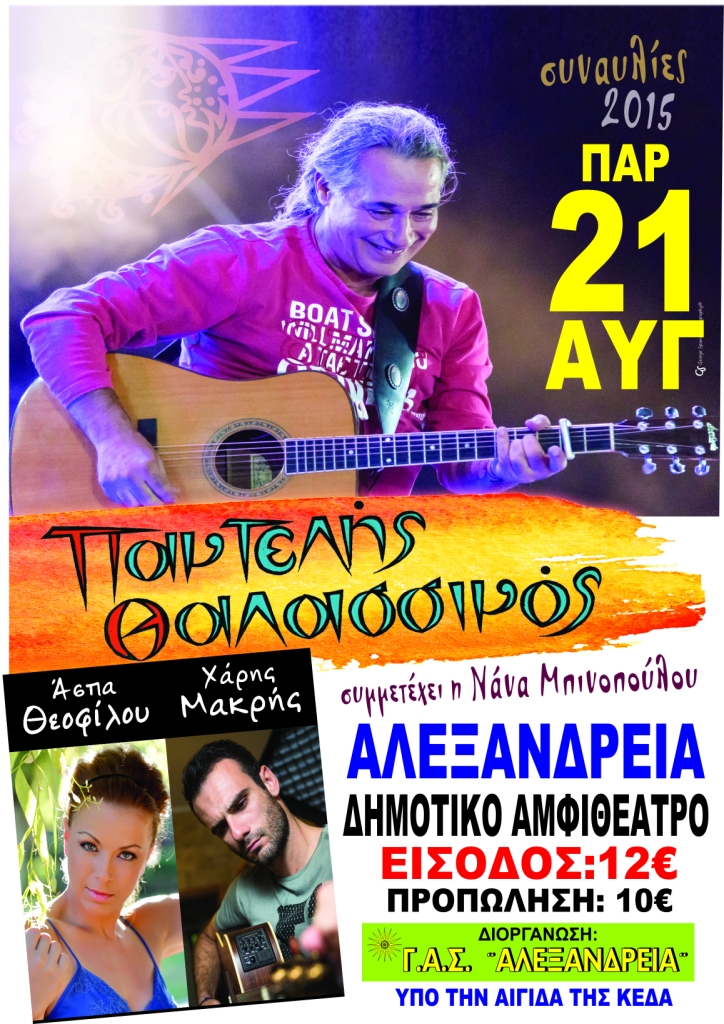 Η Κοινωφελής Επιχείρηση του Δήμου Αλεξάνδρειας σας ενημερώνει ότι ξεκίνησε η προπώληση εισιτηρίων για τις καλοκαιρινές συναυλίες που θα πραγματοποιηθούν στο Δημοτικό Αμφιθέατρο Αλεξάνδρειας.
