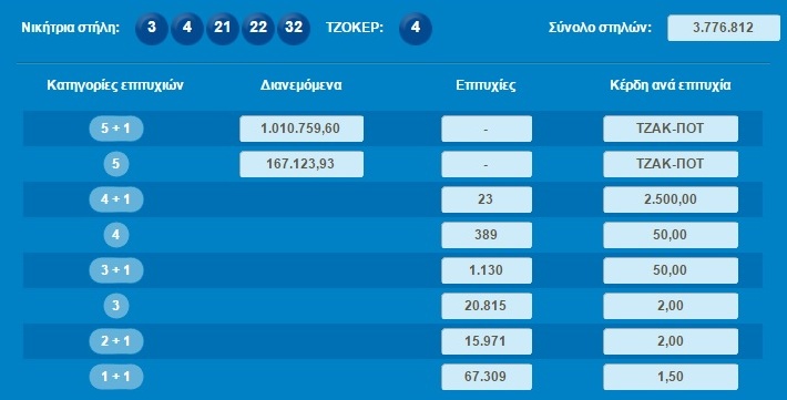 ΚΟΙΝΩΝΙΚΑ 9 Αυγούστου, 2015 posted by admin Share TZAK ΠΟΤ στο ΤΖΟΚΕΡ – δείτε τους τυχερούς αριθμούς! Δεν αναδείχθηκε ούτε σήμερα νικητής στη βασική κατηγορία (5+1) του ΤΖΟΚΕΡ και σημειώθηκε ένα ακόμα τζακ ποτ. Οι τυχεροί αριθμοί είναι: 3, 4, 21, 22, 32 και Τζόκερ το 4. Αφήστε μια απάντηση Ακύρωση απάντησηςΗ ηλ. διεύθυνση σας δεν δημοσιεύεται. Τα υποχρεωτικά πεδία σημειώνονται με *Σχόλιο * Όνομα Email Ιστότοπος Αποθήκευσε το όνομά μου, email, και τον ιστότοπο μου σε αυτόν τον πλοηγό για την επόμενη φορά που θα σχολιάσω.