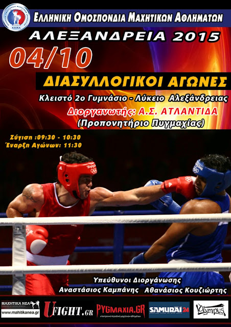 Ο Α.Σ. ΑΤΛΑΝΤΙΔΑ Αλεξάνδρειας διοργανώνει στην πόλη μας την Κυριακή 4 Οκτωβρίου Διασυλλογικούς Αγώνες πυγμαχίας.