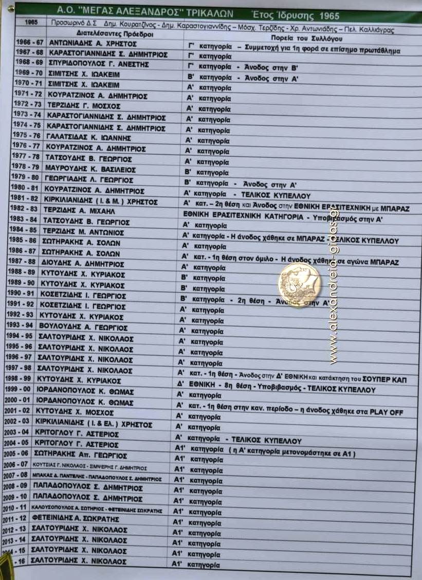 Η πρόεδρος ολοκλήρωσε την παρουσίαση με όλους τους ποδοσφαιριστές που είναι φέτος στο ρόστερ των Τρικάλων αλλά και των ακαδημιών ενώ ακολούθησε έκθεση φωτογραφίας με ιστορικό φωτογραφικό υλικό από τα 50 χρόνια ύπαρξης του συλλόγου που συμπληρώνονται φέτος.