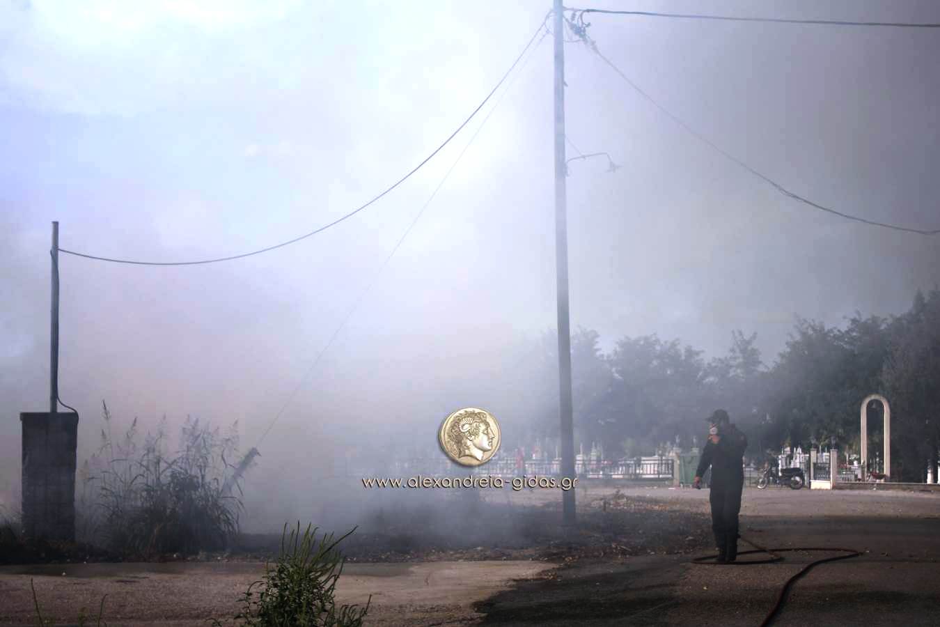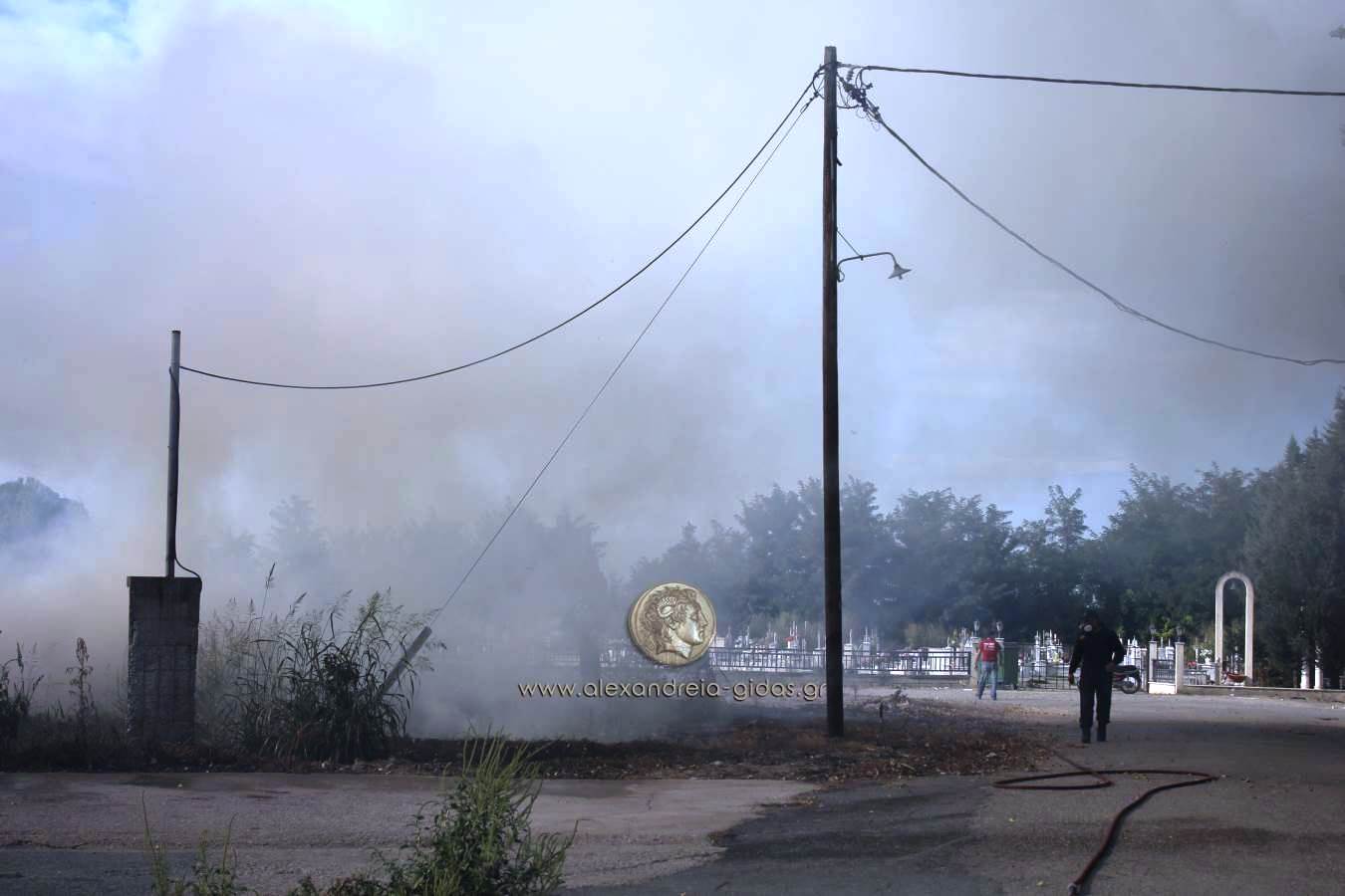 Εκεί ξέσπασε μεγάλη φωτιά πίσω από τα κοιμητήρια του χωριού απειλώντας κατοικίες, τα κοιμητήρια, σταθμευμένα οχήματα και ένα μαντρί.