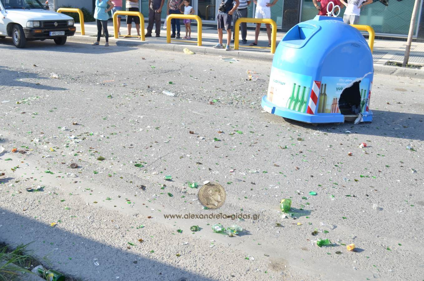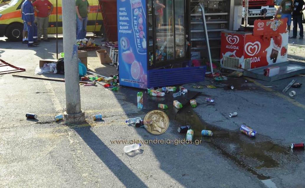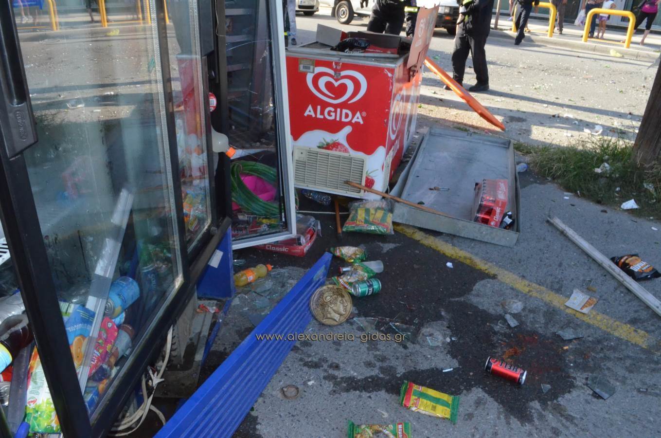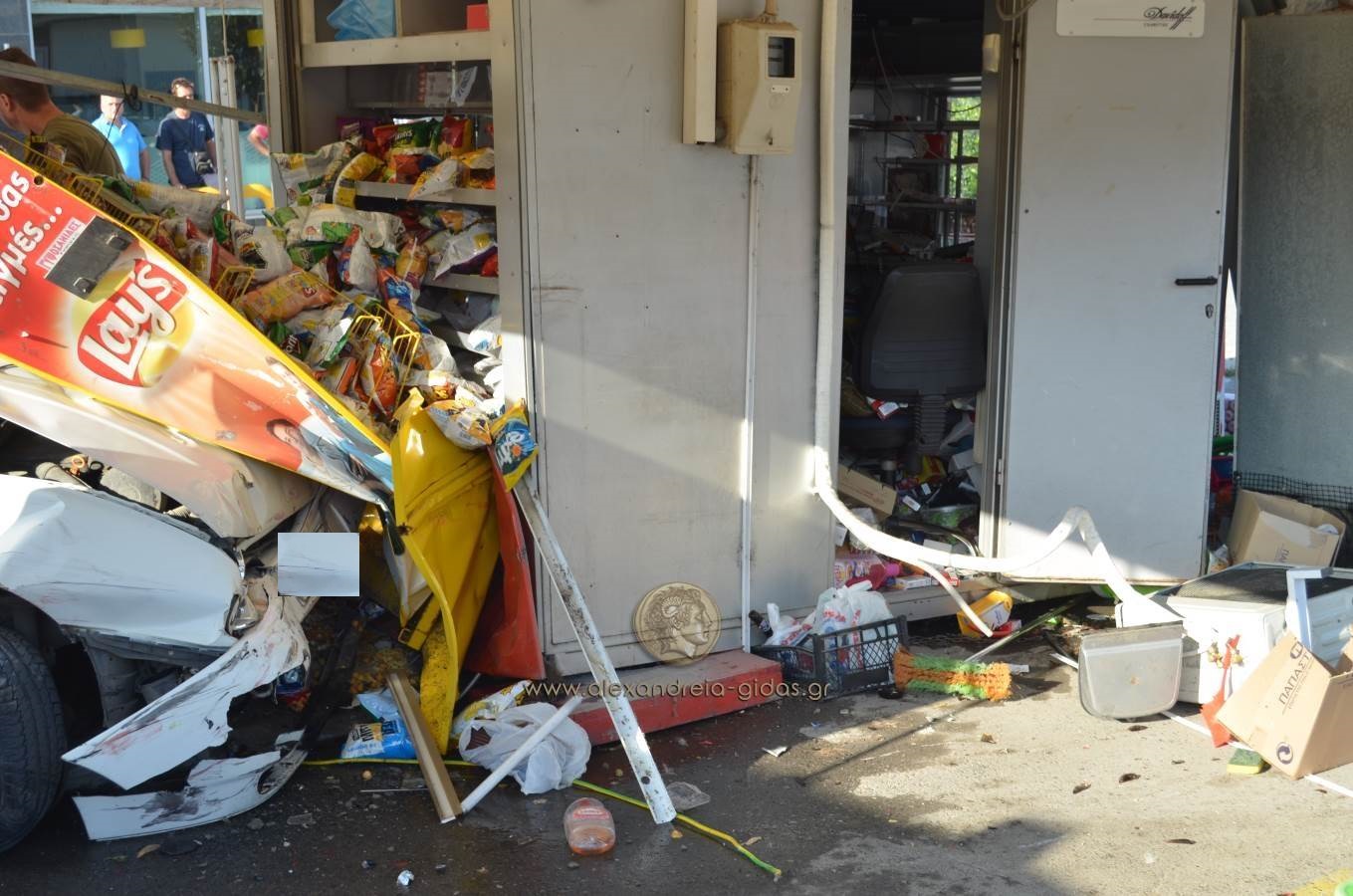 Ο οδηγός απεγκλωβίστηκε από το όχημα από τους πυροσβέστες και το όχημα του ασθενοφόρου έχοντας τις αισθήσεις του και μεταφέρθηκε στο Κέντρο Υγείας Αλεξάνδρειας. Η νεαρή κοπέλα βγήκε από το περίπτερο χωρίς να τραυματιστεί.