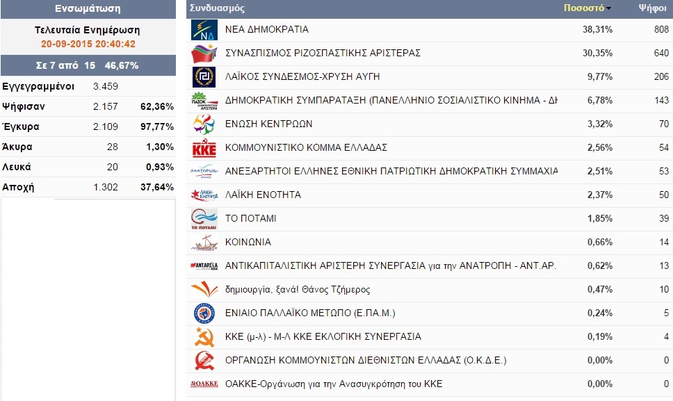 ΠΟΛΙΤΙΚΗ 20 Σεπτεμβρίου, 2015 posted by admin Share Το αποτέλεσμα στα μισά εκλογικά τμήματα του πρώην δήμου Μελίκης Στα 7 από τα 15 εκλογικά τμήματα του πρώην δήμου Μελίκης έχουν γίνει γνωστά τα αποτελέσματα των Εθνικών Εκλογών. Δείτε (κλικ στην εικόνα για μεγέθυνση): Αφήστε μια απάντηση Ακύρωση απάντησηςΗ ηλ. διεύθυνση σας δεν δημοσιεύεται. Τα υποχρεωτικά πεδία σημειώνονται με *Σχόλιο * Όνομα Email Ιστότοπος Αποθήκευσε το όνομά μου, email, και τον ιστότοπο μου σε αυτόν τον πλοηγό για την επόμενη φορά που θα σχολιάσω.