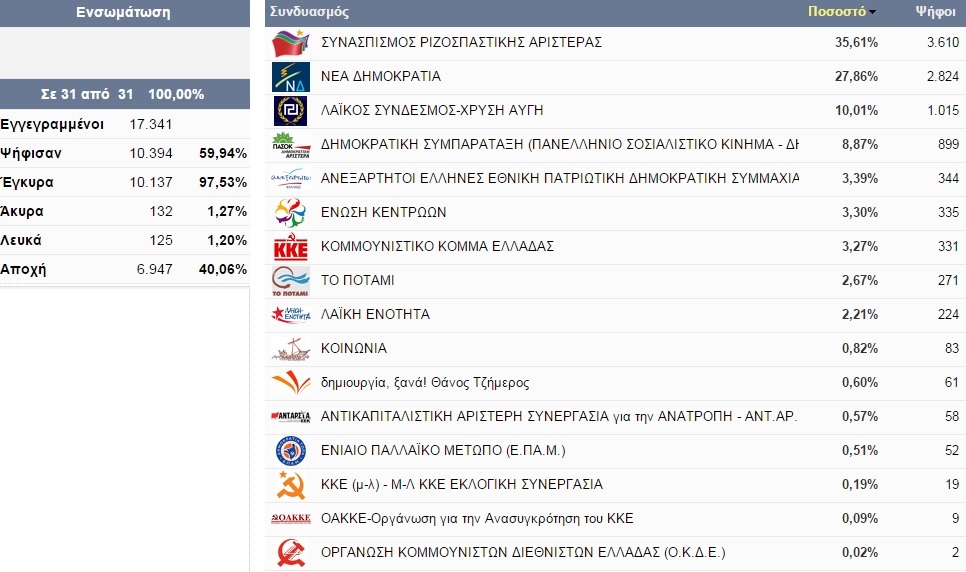Τελικό αποτέλεσμα υπάρχει και από τα 31 εκλογικά τμήματα του μικρού πρώην δήμου Αλεξάνδρειας.