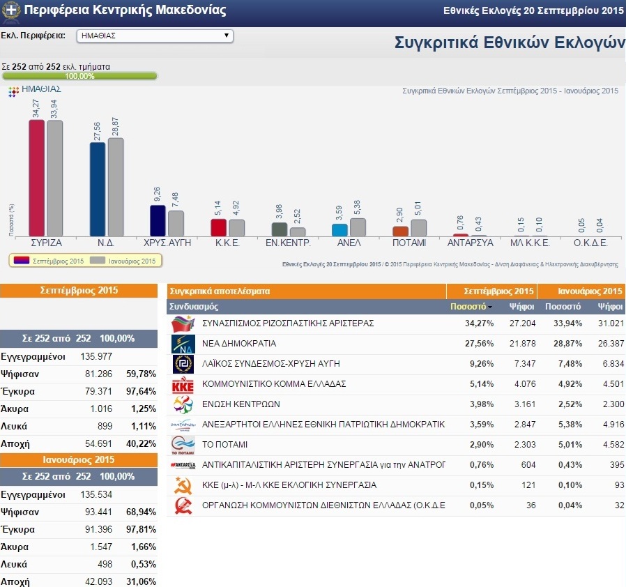Μετά τα συγκριτικά αποτελέσματα των βουλευτικών εκλογών στον δήμο Αλεξάνδρειας (κλικ ΕΔΩ), ενδιαφέρον παρουσιάζει και η σύγκριση των αποτελεσμάτων Ιανουαρίου και Σεπτεμβρίου 2015 στον νομό της Ημαθίας.