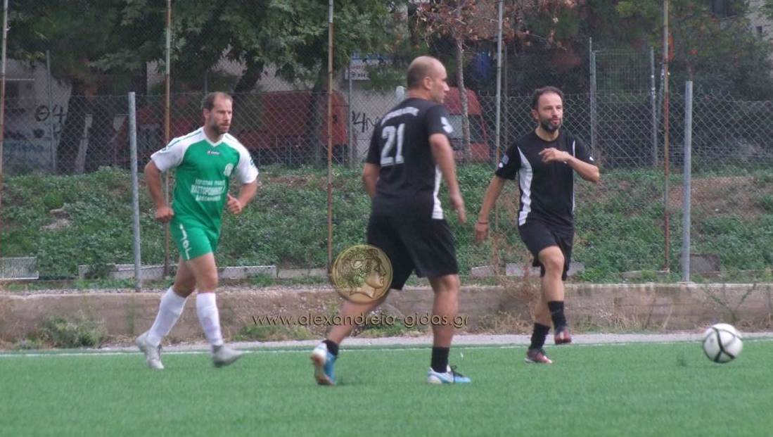 Το σκορ άνοιξαν οι γηπεδούχοι στο 5΄ με τον Μπετανίδη και διπλασίασαν τα τέρματά τους στο 20΄ με τον Σαραφιανο (2-0). Οι Παλαίμαχοι Αλεξάνδρειας μείωσαν στο 25΄ με τον Διτσόλα σε 2-1 και ισοφάρισαν με τον Τριανταφυλλίδη σε 2-2 στο 36΄ που ήταν και το σκορ ημιχρόνου.