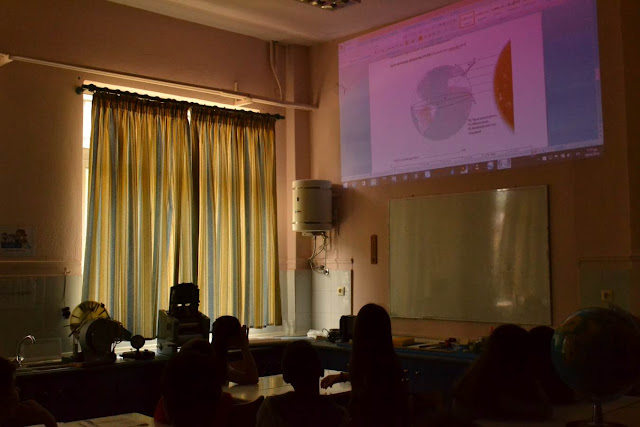 Οι μαθητές, ακολουθώντας τον τρόπο του Ερατοσθένη (3ος π.Χ. αιώνας), μέτρησαν την περίμετρο (Π = 39635 km) και την ακτίνα (R = 6311 km) της Γης. Η μέτρηση των μαθητών είχε απόκλιση μικρότερη του 1% από την πραγματική τιμή της ακτίνας της Γης (R = 6371 km)!