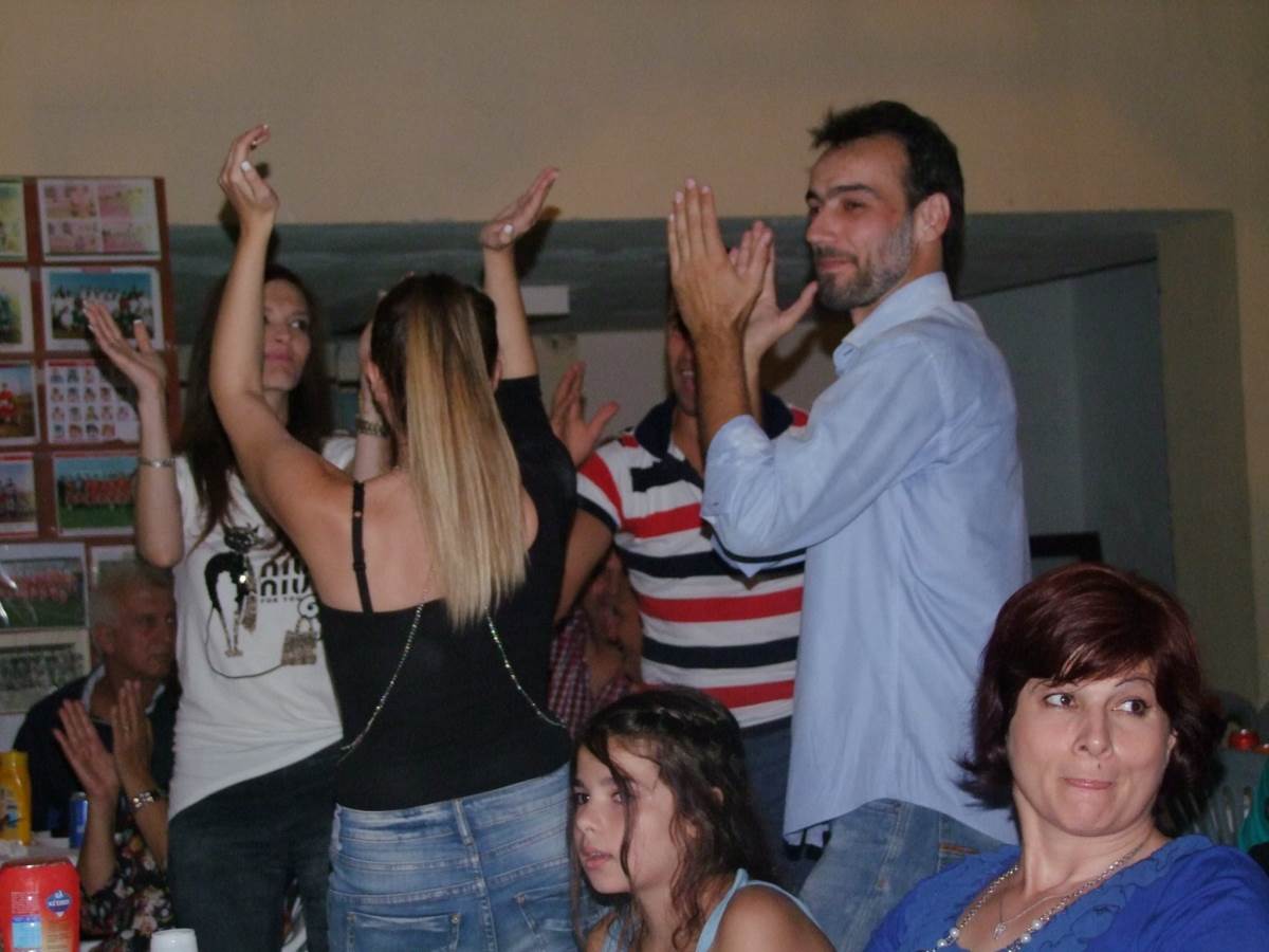 Πολύ καλό κλίμα, άφθονο κρασί, εκλεκτό φαγητό, υπέροχη μουσική από τον DJ Σωτήρη Καλουσόπουλο και από τον Κίμωνα Τερζίδη (ακορντεόν), στο ”Οικογενειακό” γλέντι που οργανώθηκε προχτές βράδυ στα Τρίκαλα (στο ισόγειο του κοινοτικού καταστήματος), για τον Θρησκευτικό γάμο του προπονητή της ομάδας Γιώργου Ντάμτσιου, που θα γίνει την Κυριακή 27/9/2015 στη Μελίκη..