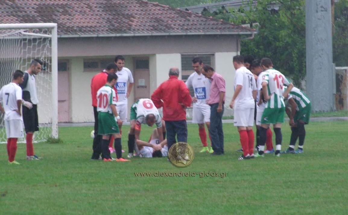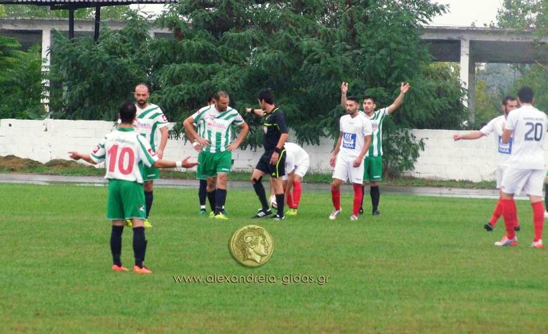 Το σκορ άνοιξε με δύο πέναλτι, από ένα για κάθε ομάδα. Στο 19΄ ο Μηλιώτης έκανε το 0-1 και στο 23΄ ο Σαμαράς ισοφάρισε σε 1-1 για την Αλεξάνδρεια.