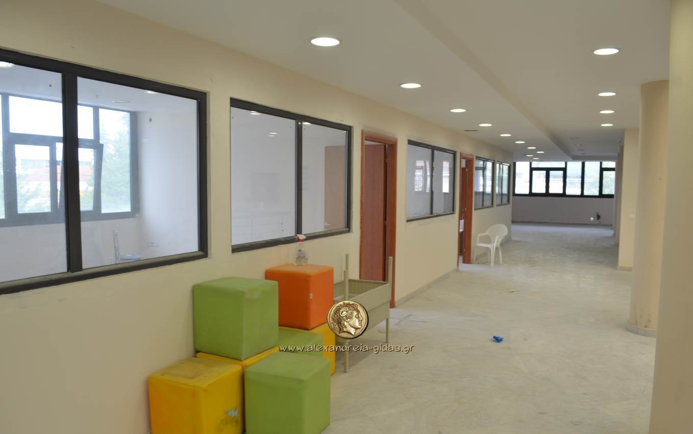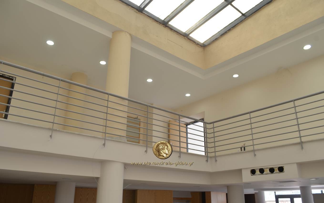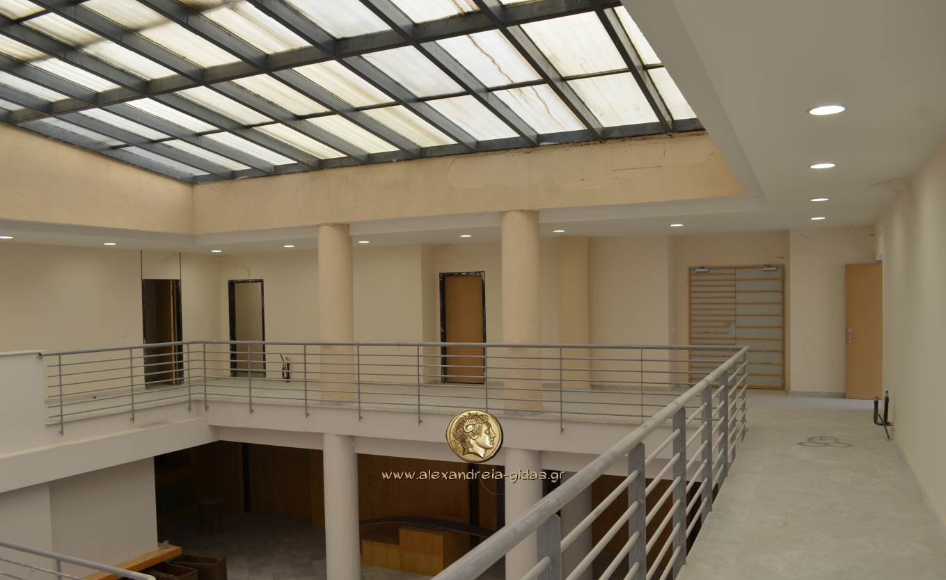 Στην παρούσα φάση οι εργασίες επικεντρώνονται στον δεύτερο όροφο του κτιρίου ώστε μέχρι τέλους του χρόνου να μπορέσει να λειτουργήσει εκεί η Δημοτική Βιβλιοθήκη Αλεξάνδρειας.