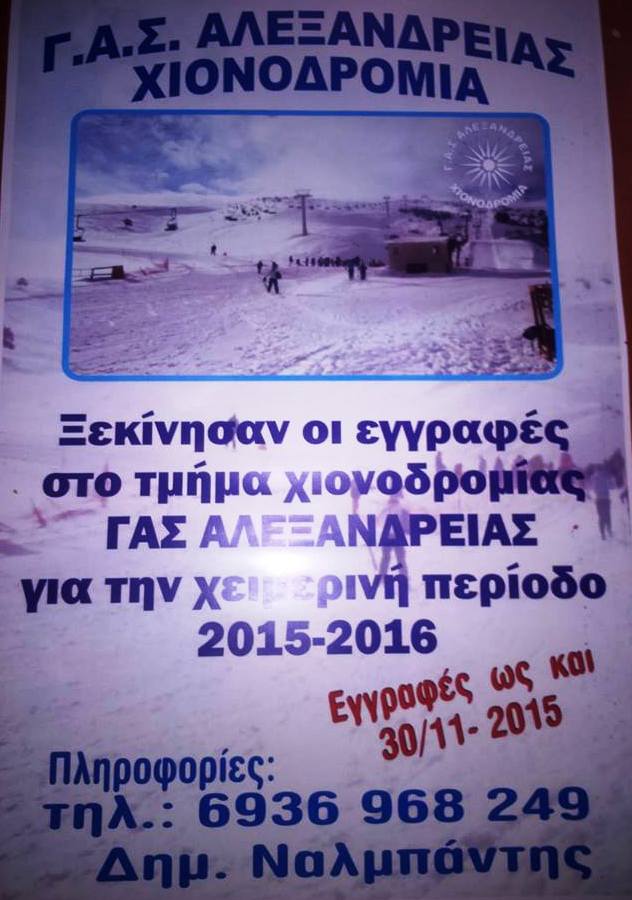 Τμήμα Χιονοδρομίας του ΓΑΣ Αλεξάνδρειας: Συνεχίζονται οι εγγραφές (πληροφορίες)