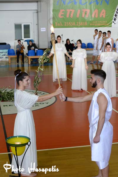 Παρουσίασαν χορογραφίες απο τον χορό των ιερειών καθώς και νεανίες να κάνουν αναπαράσταση τα Αρχαία Ολυμπιακά αθλήματα. Επίσης, αθλητές και αθλήτριες έλαβαν μέρος σε σύγχρονα Ολυμπιακά αθλήματα όπως Παγκράτειο, Μπάσκετ και Βόλεϋ.