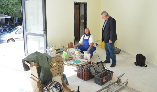 Ο δήμαρχος παρακολούθησε την εξέλιξη των εργασιών τόσο στον κάτω όσο και στον πάνω όροφο του κτιρίου όπου θα μεταφερθεί σε σύντομο χρονικό διάστημα η Δημοτική Βιβλιοθήκη.