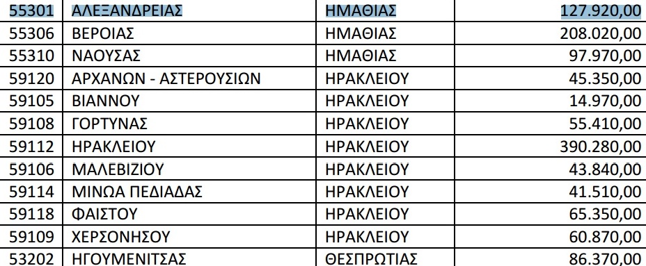 Ο δήμος Αλεξάνδρειας θα εισπράξει το ποσό των 127.920,00 ευρώ όπως φαίνεται και στον παρακάτω πίνακα.