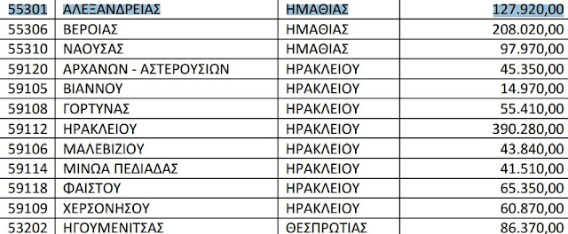 Όλος ο πίνακας με την κατανομή των ποσών στους δήμους της χώρας και η απόφαση κλικ ΕΔΩ