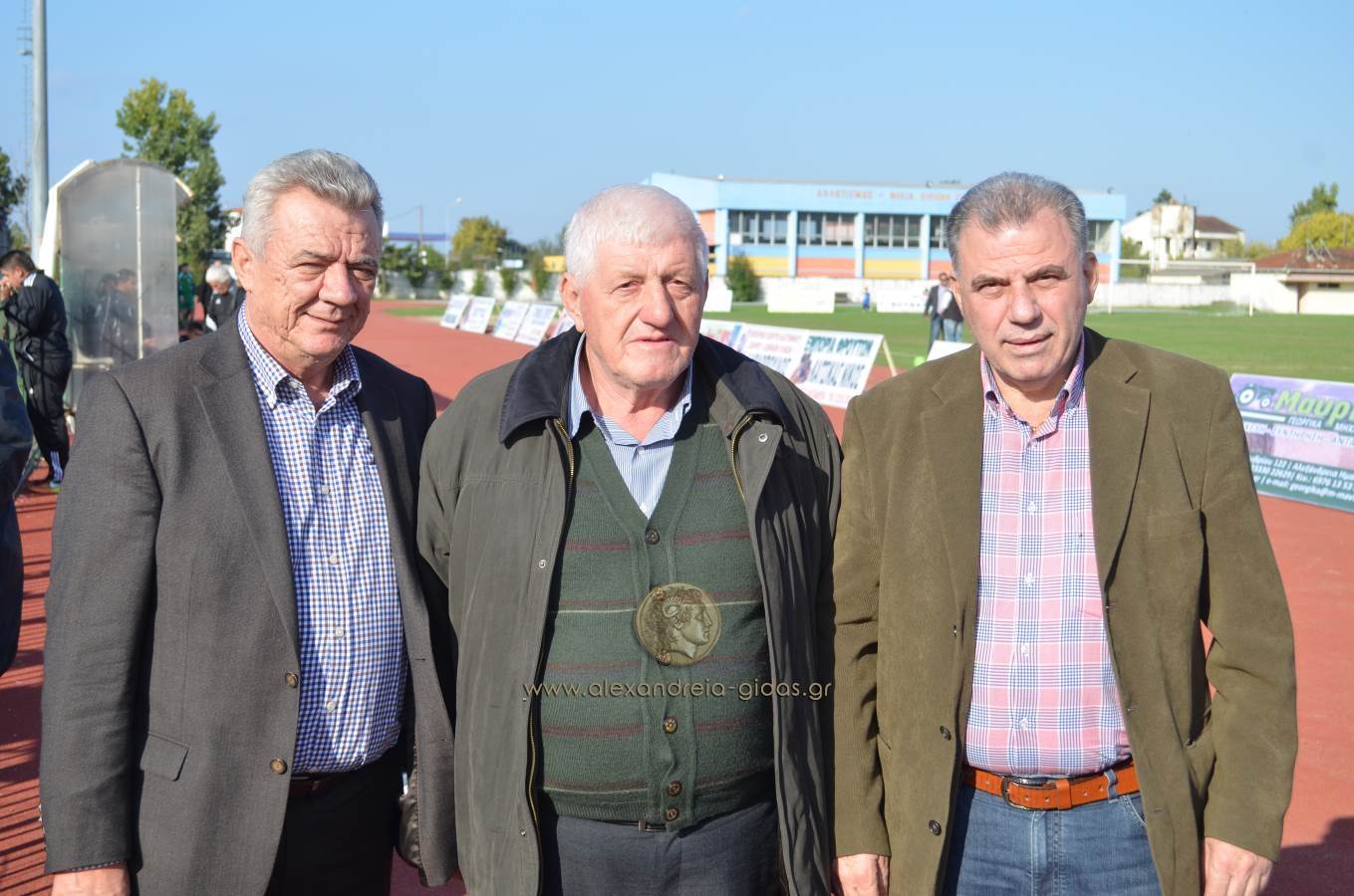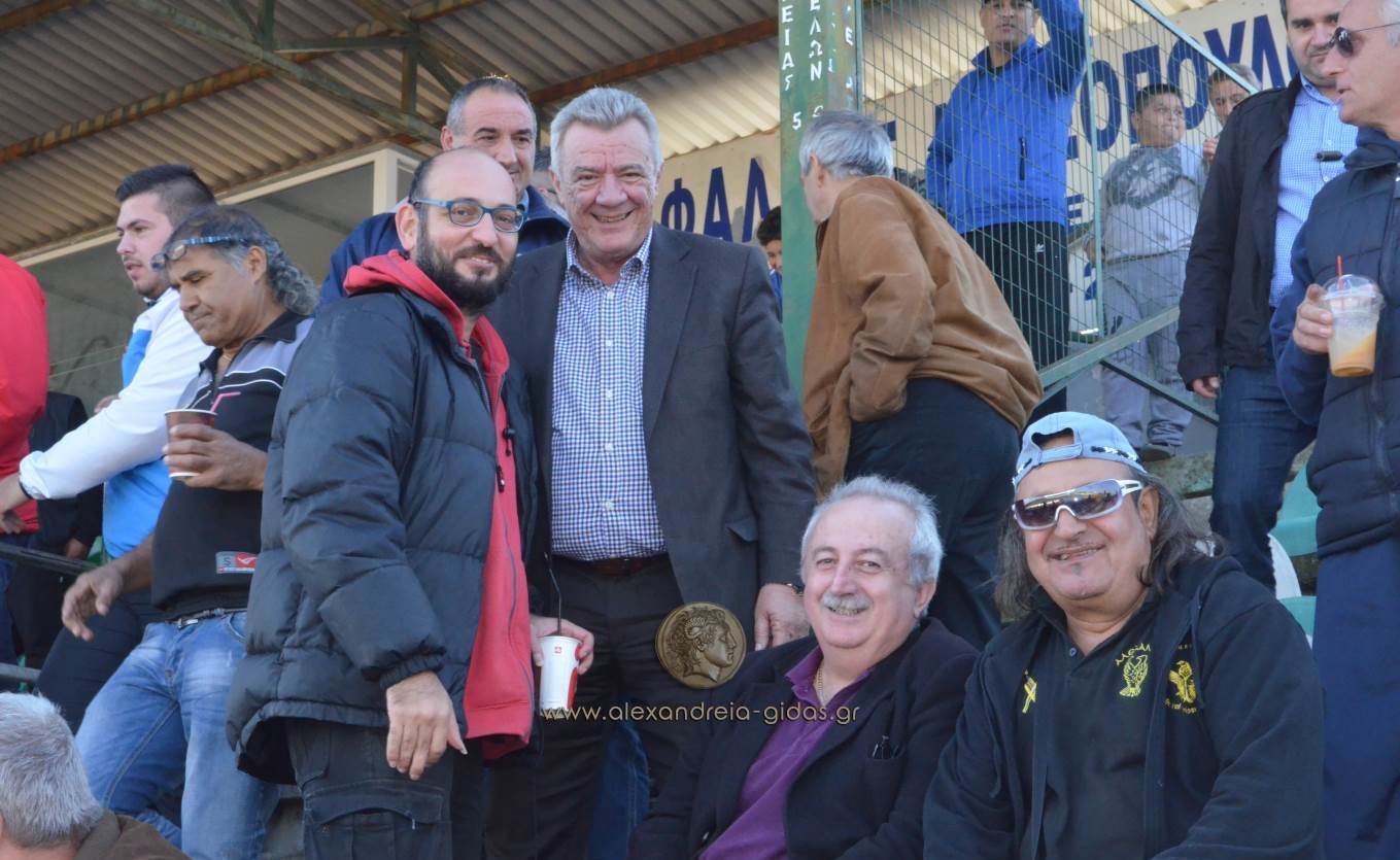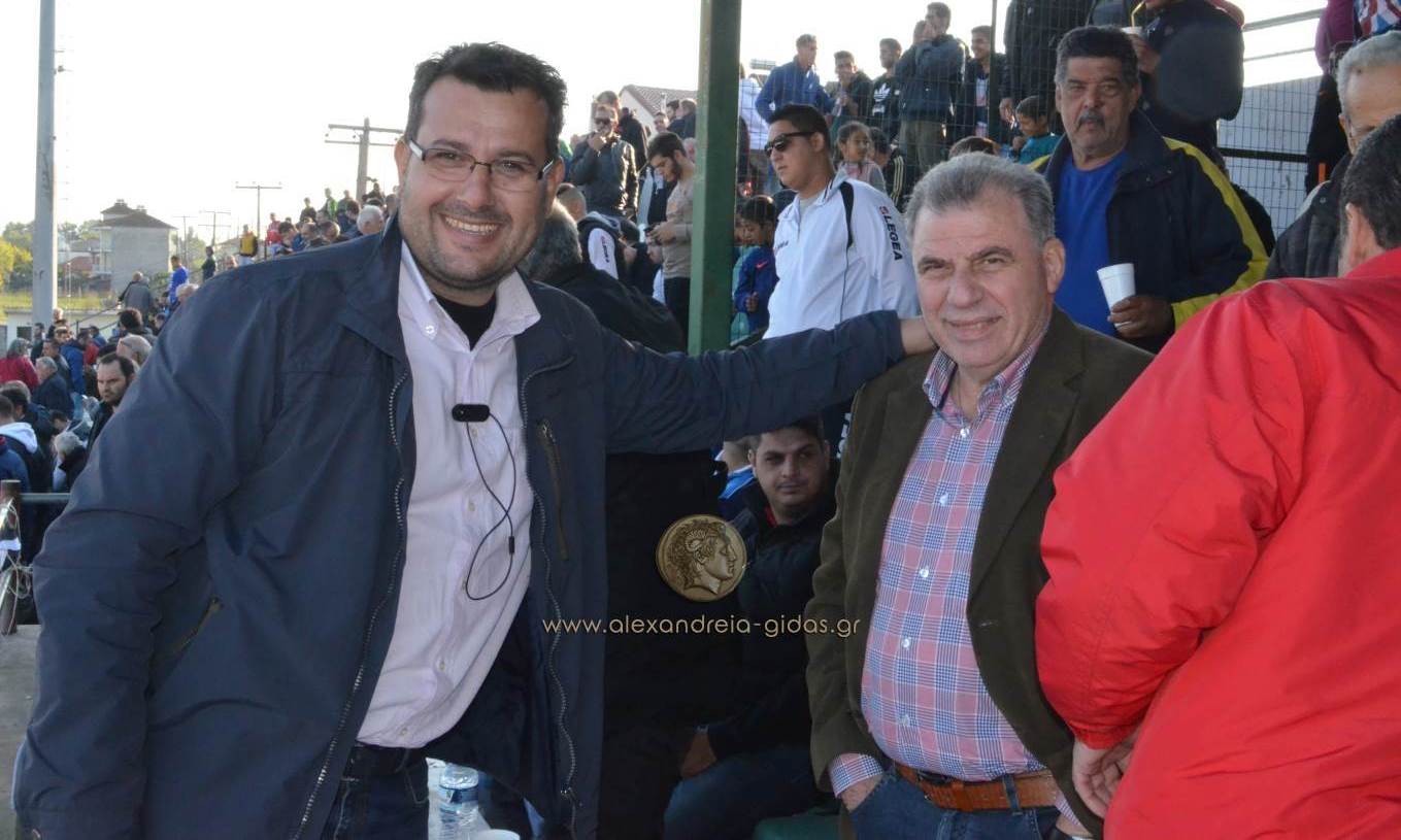 Πριν την έναρξη του αγώνα τον φωτογραφήσαμε με τον δήμαρχο Αλεξάνδρειας Παναγιώτη Γκυρίνη και τον καλό του φίλο δημοτικό σύμβουλο Γιώργο Θεοχάρη.