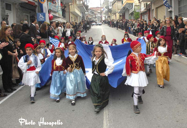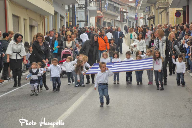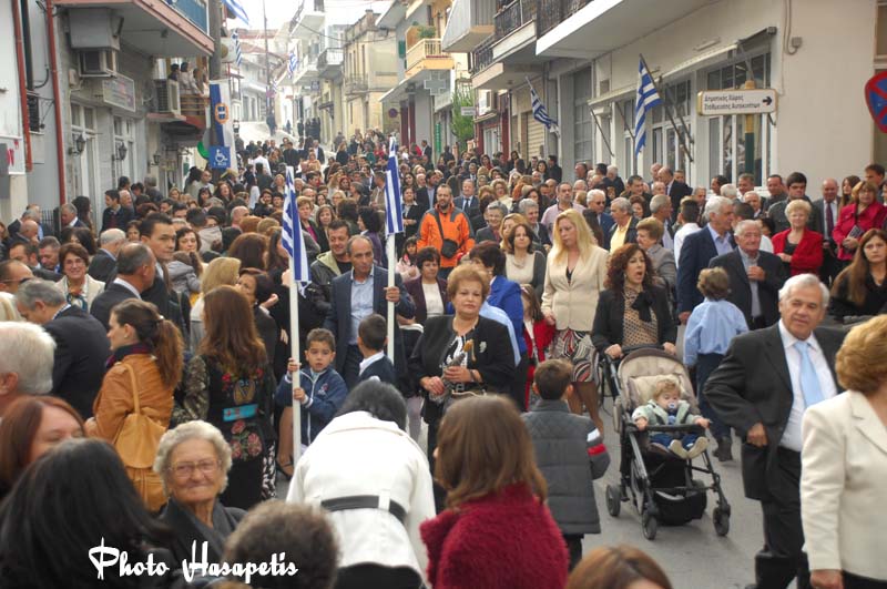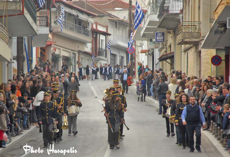 Η παρέλαση ξεκίνησε με τη Φιλαρμονική του Δήμου στη συνέχεια τα Δημοτικά σχολεία, ακολούθησαν οι μαθητές των Γυμνασίων και των Λυκείων τα μικρά παιδάκια του παιδικού και βρεφικού και ολοκληρώθηκε με το τμήμα του πολιτιστικού Συλλόγου Νικολάου Λούση.