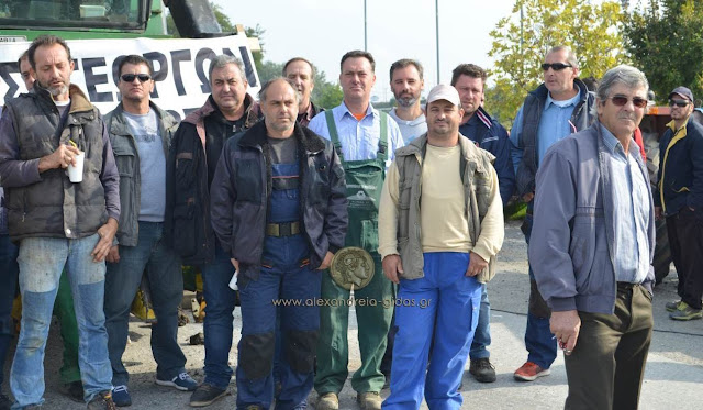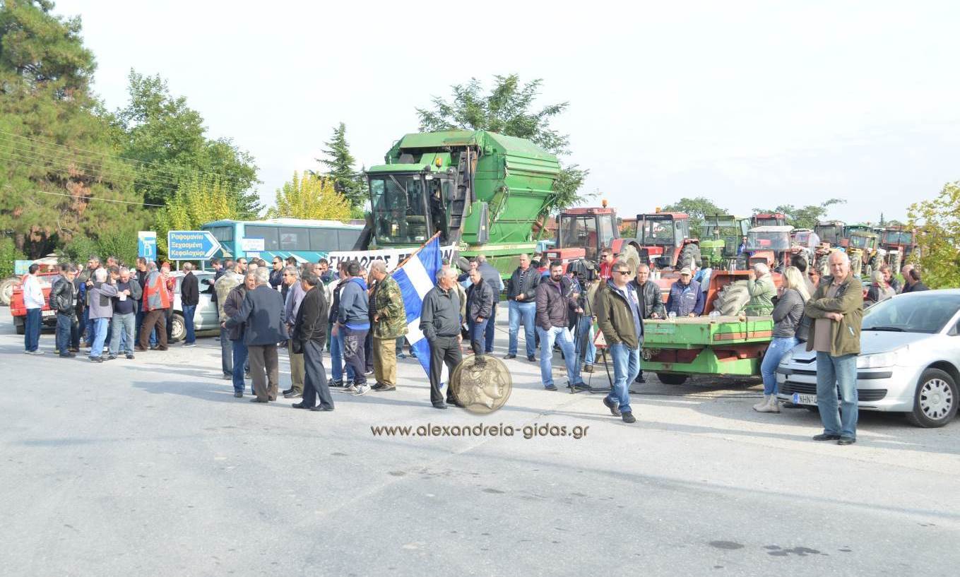 Στον κόμβο της Κουλούρας συγκεντρώθηκαν το πρωί της Πέμπτης οι αγροτικοί σύλλογοι Αλεξάνδρειας, Βέροιας και Νάουσας.