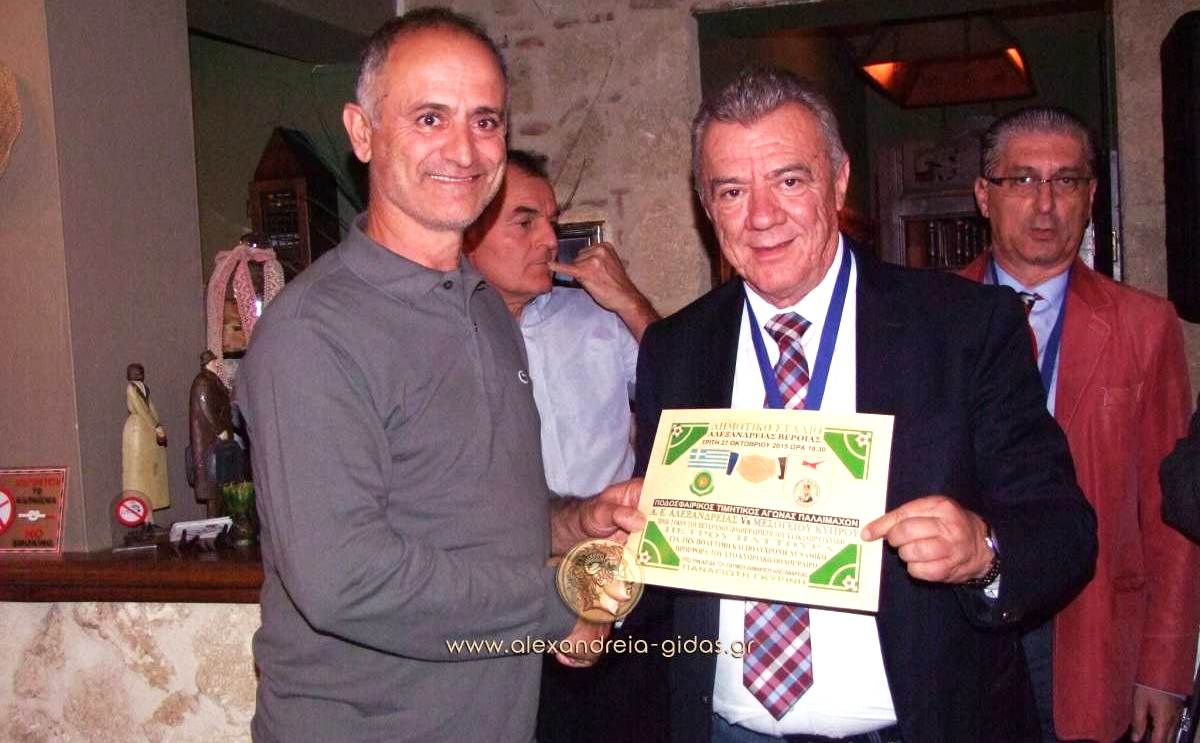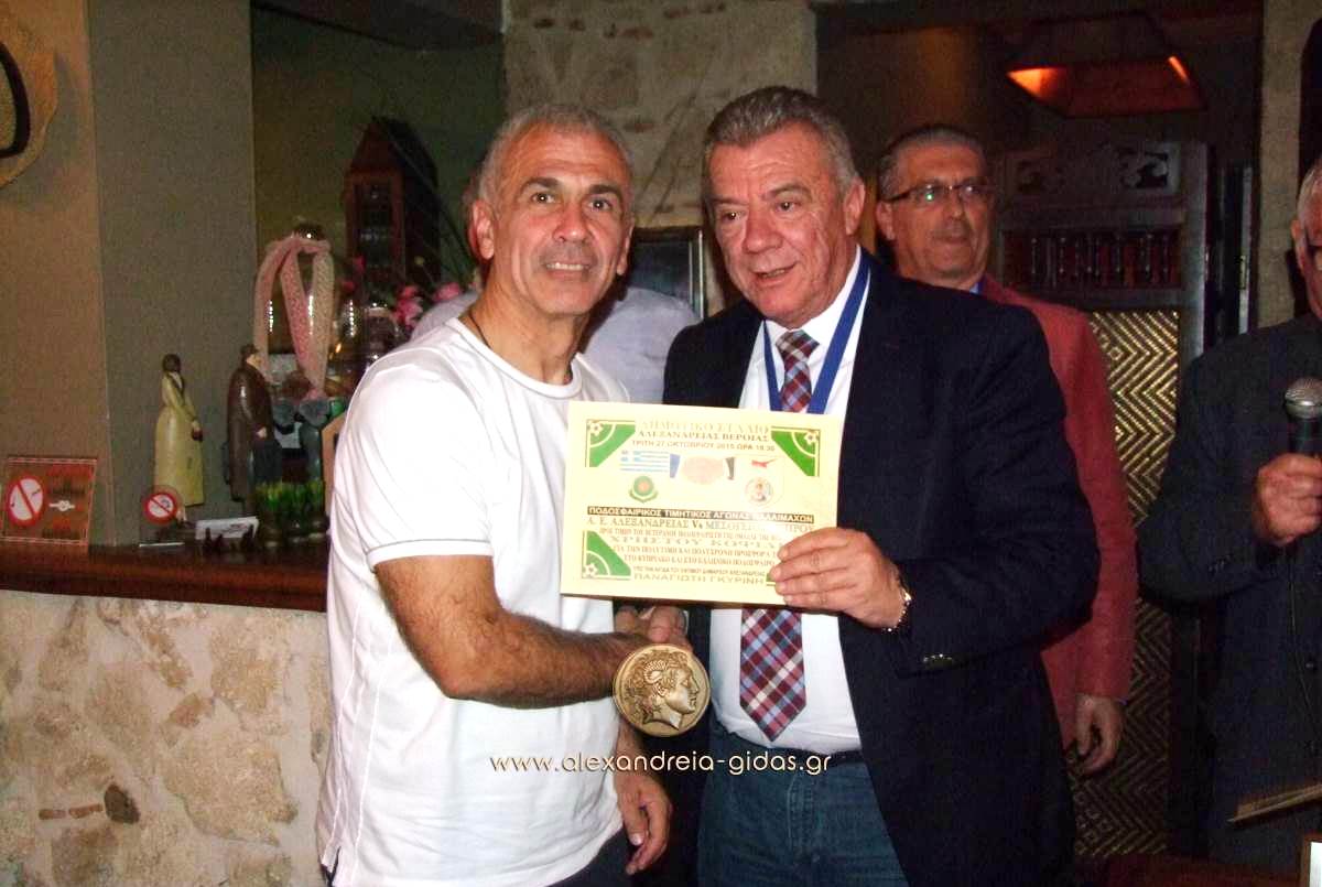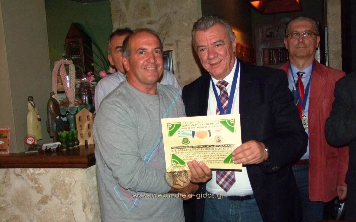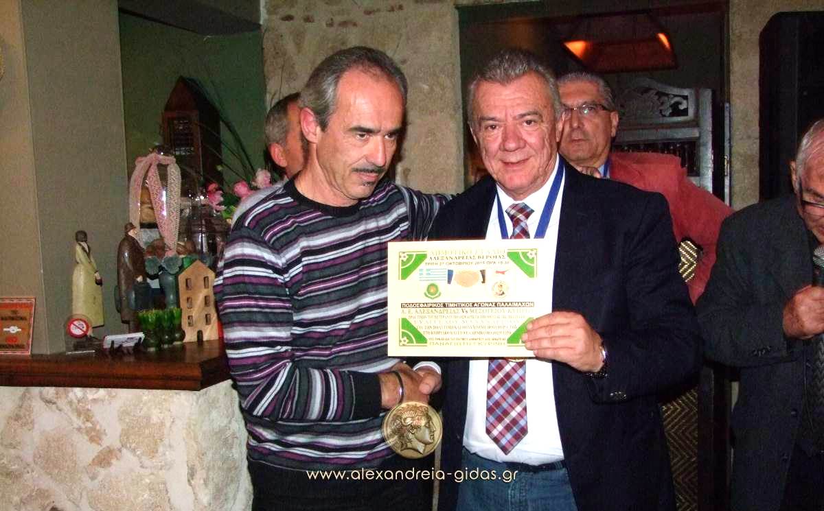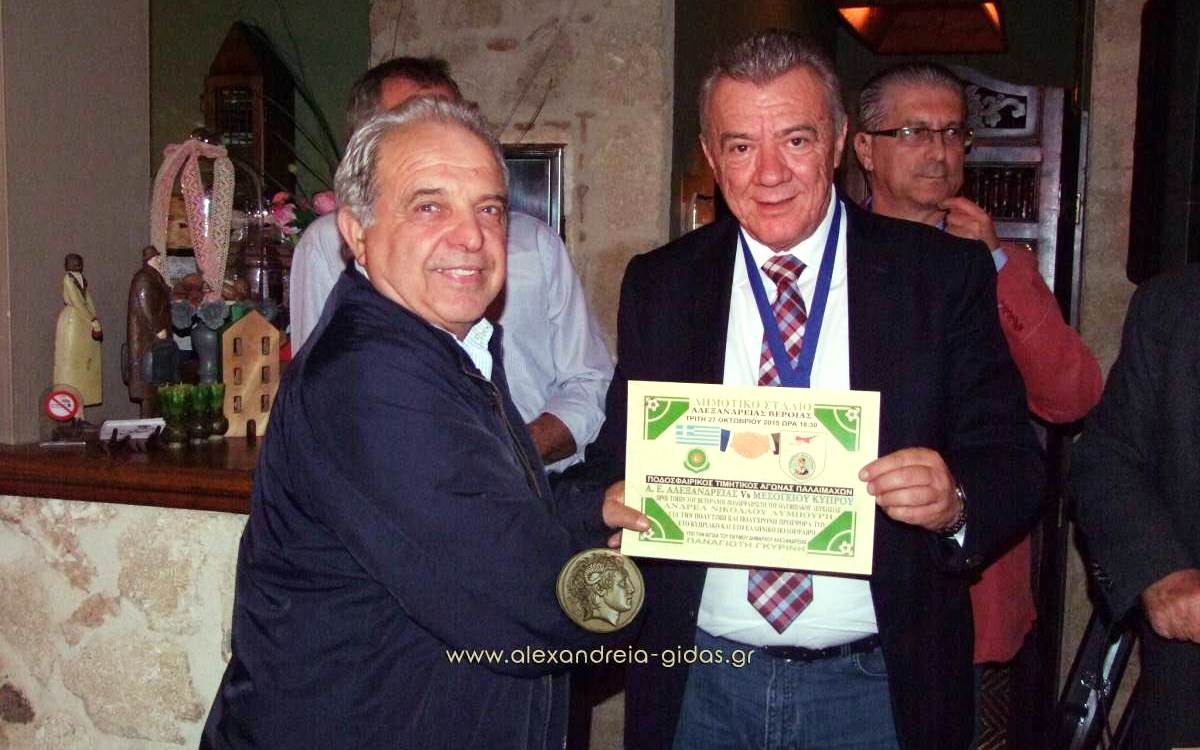 Το 3ο ημίχρονο του αγώνα πραγματοποιήθηκε στον ΕΚΕΙΜΕΡΟ του Σάββα Περπερίδη στον Νέο Πρόδρομο όπου ο πρόεδρος της ΜΕΣΟΓΕΙΟΥ βράβευσε όλους τους παλαίμαχους ποδοσφαιριστές της Αλεξάνδρειας ενώ οι παλαίμαχοι τίμησαν με την προτομή του Μεγάλου Αλεξάνδρου τον δήμαρχο Αλεξάνδρειας Παναγιώτη Γκυρίνη, τον αντιπρόσωπο του δήμου Ιδαλίου Λευκωσίας και τον πρόεδρο της ΚΕΔΑ Στέφανο Δελιόπουλο.