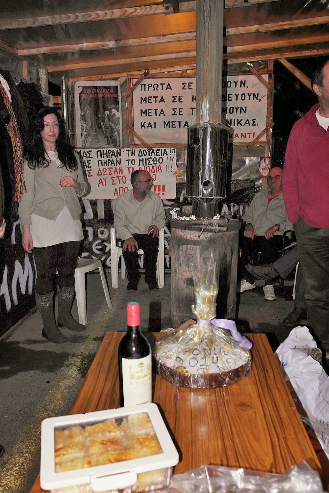 Την Πέμπτη 02/01 με λίγο κρασί και πολύ ενθουσιασμό καθώς και ευχές για την επιτυχία του πολύμηνου αγώνα τους, έγινε η κοπή της βασιλόπιτας στα διόδια Αιγινίου από τους κατοίκους της περιοχής που αγωνίζονται για την κατάργηση των διοδίων εδώ και έναν χρόνο περίπου.