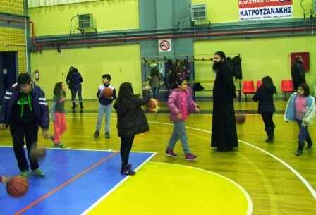 Μετά την ολοκλήρωση της αναμέτρησης οι νεαροί αθλητές εισήλθαν στον αγωνιστικό χώρο για να ρίξουν μερικά σουτ στα καλάθια, την παράσταση ωστόσο έκλεψε ο εφημέριος του Ναού της Αγίας Παρασκευής, πατέρας Γεώργιος με τα τρίποντα που πέτυχε (φώτο πιο κάτω).