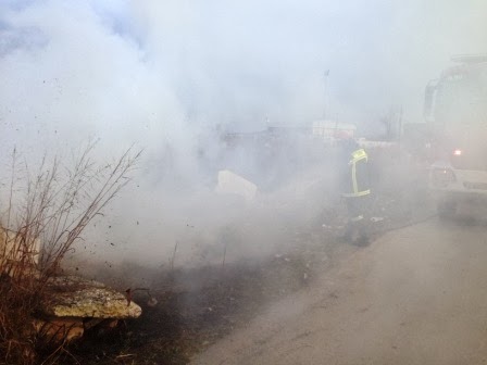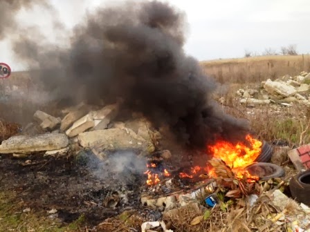 Άγνωστοι έβαλαν φωτιά σε λάστιχα τα οποία βρισκόταν στο παράπλευρο κανάλι με αποτέλεσμα η γύρω περιοχή να γεμίσει με μαύρο καπνό, δυσοσμία κλπ.