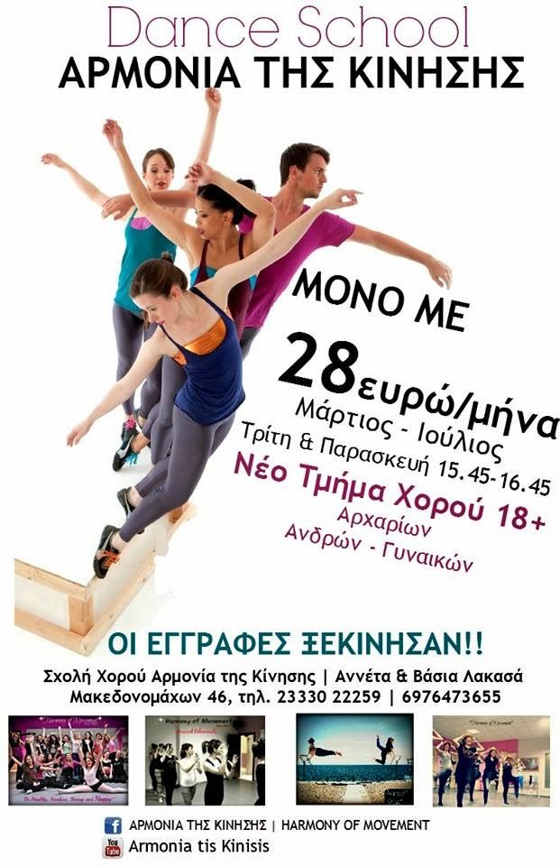 Δώστε στον εαυτό σας την ευκαιρία να μπείτε στον κόσμο και τη μεγάλη παρέα του Χορού με το καινούριο πρόγραμμα της Σχολής “Αρμονία της Κίνησης” στην Αλεξάνδρεια!
