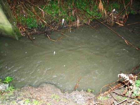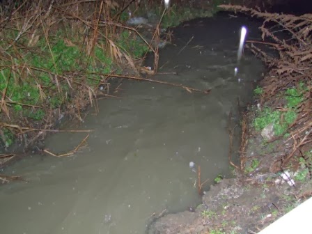 Στην αποξηραντική τάφρο στην οποία καταλήγουν τα όμβρια ύδατα όλων των φρεατίων της Αλεξάνδρειας βρεθήκαμε λίγο μετά τις 11 το βράδυ της Κυριακής.