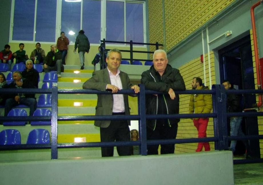 Και πολιτικά πρόσωπα στο γήπεδο, ο πρόεδρος της δημοτικής κοινότητας Μελίκης και υποψήφιος δημοτικός σύμβουλος Γιώργος Μαντζώλας παρέα με τον πρόεδρο του Νεοκάστρου Στέργιο Μπούθα