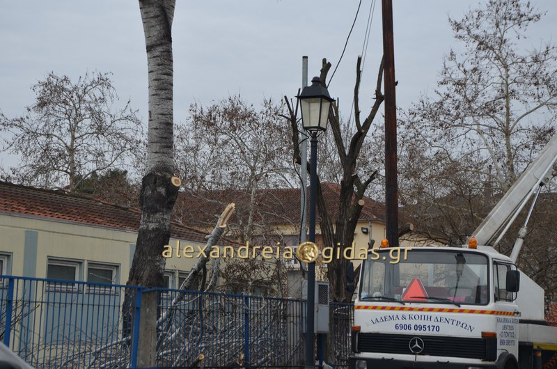 Οι εργασίες ξεκίνησαν από νωρίς το πρωί. Αφαιρέθηκαν τα ξερά και επικίνδυνα κλαδιά όπως αναφέρουν οι υπεύθυνοι του δήμου Αλεξάνδρειας για την ασφάλεια των μαθητών και εκπαιδευτικών των σχολείων.