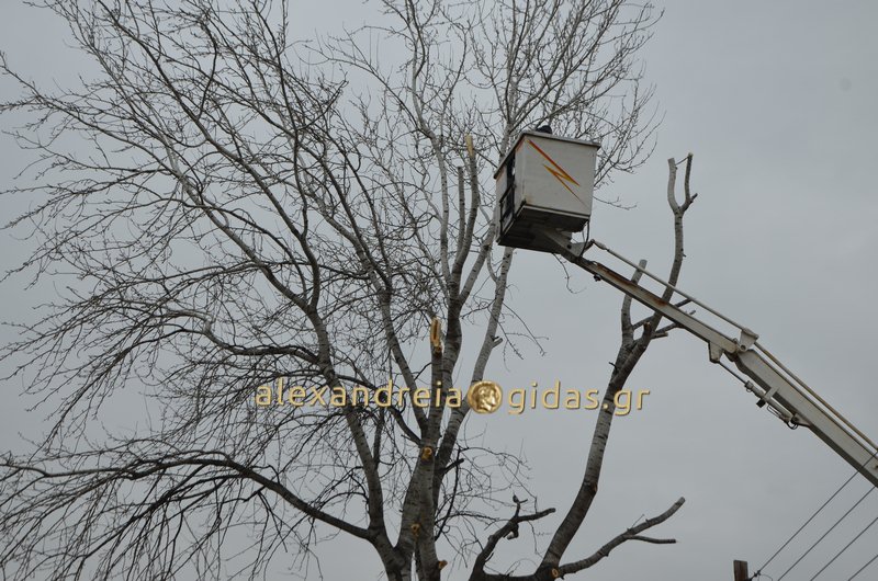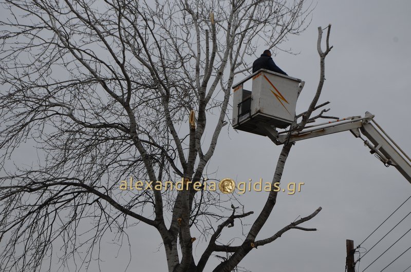 Οι εργασίες ξεκίνησαν από νωρίς το πρωί. Αφαιρέθηκαν τα ξερά και επικίνδυνα κλαδιά όπως αναφέρουν οι υπεύθυνοι του δήμου Αλεξάνδρειας για την ασφάλεια των μαθητών και εκπαιδευτικών των σχολείων.