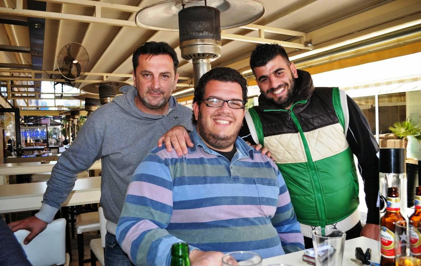 Τους ιδιοκτήτες του TROCADERΟ στον πεζόδρομο της Αλεξάνδρειας Γιώργο Πουρλιτόπουλο και Μάκη Κυριακού συναντήσαμε με τον γνωστό τραγουδιστή της πόλης μας Φώντα Λαφαζάνη το μεσημέρι της Τρίτης.