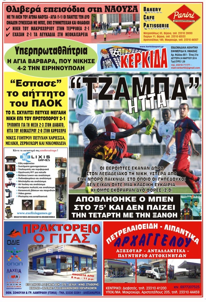 ΑΘΛΗΤΙΚΑ 23 Μαρτίου, 2014 posted by admin Share Διαβάστε το πρωτοσέλιδο της ΚΕΡΚΙΔΑΣ που κυκλοφορεί τη Δευτέρα 24/03 Κυκλοφορεί τη Δευτέρα 24 Μαρτίου η μοναδική αθλητική εφημερίδα του νομού Ημαθίας, η Κερκίδα. Πάρτε μια γεύση από το πρωτοσέλιδό της: Αφήστε μια απάντηση Ακύρωση απάντησηςΗ ηλ. διεύθυνση σας δεν δημοσιεύεται. Τα υποχρεωτικά πεδία σημειώνονται με *Σχόλιο * Όνομα Email Ιστότοπος Αποθήκευσε το όνομά μου, email, και τον ιστότοπο μου σε αυτόν τον πλοηγό για την επόμενη φορά που θα σχολιάσω.