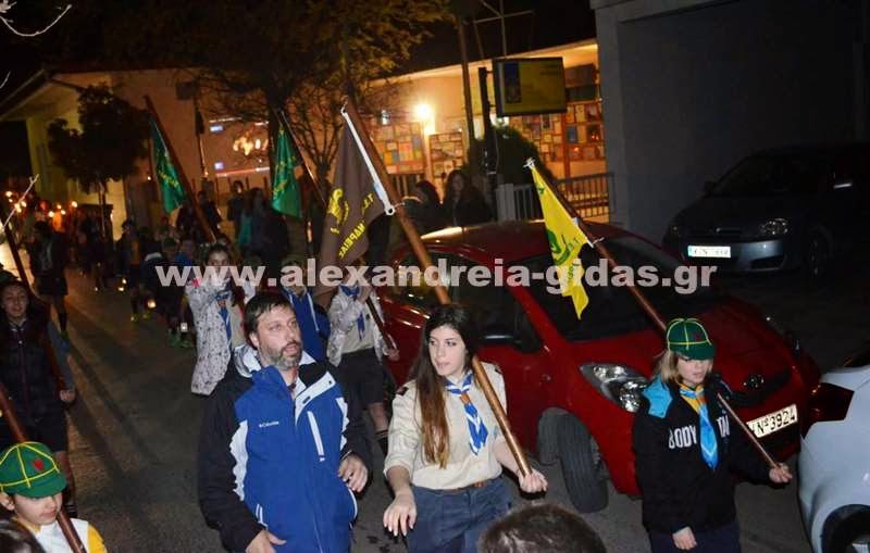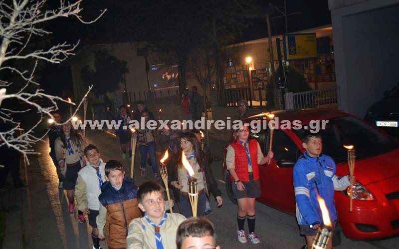 Όπως κάθε χρόνο έτσι και φέτος οι Πρόσκοποι Αλεξάνδρειας πριν την παρέλαση της 25ης Μαρτίου διοργάνωσαν την καθιερωμένη Λαμπαδηδρομία στην πόλη μας τιμώντας τους ήρωες του 1821.