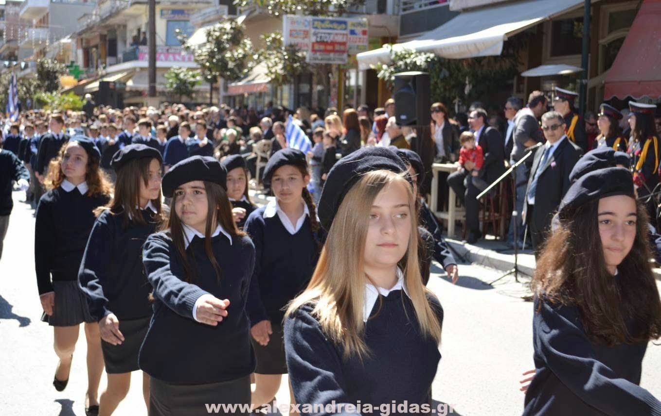 Σχολεία, πολιτιστικοί και αθλητικοί σύλλογοι, οι Πρόσκοποι Αλεξάνδρειας και ο στρατός παρέλασαν στην Βετσοπούλου κερδίζοντας το θερμό χειροκρότημα των πολιτών.