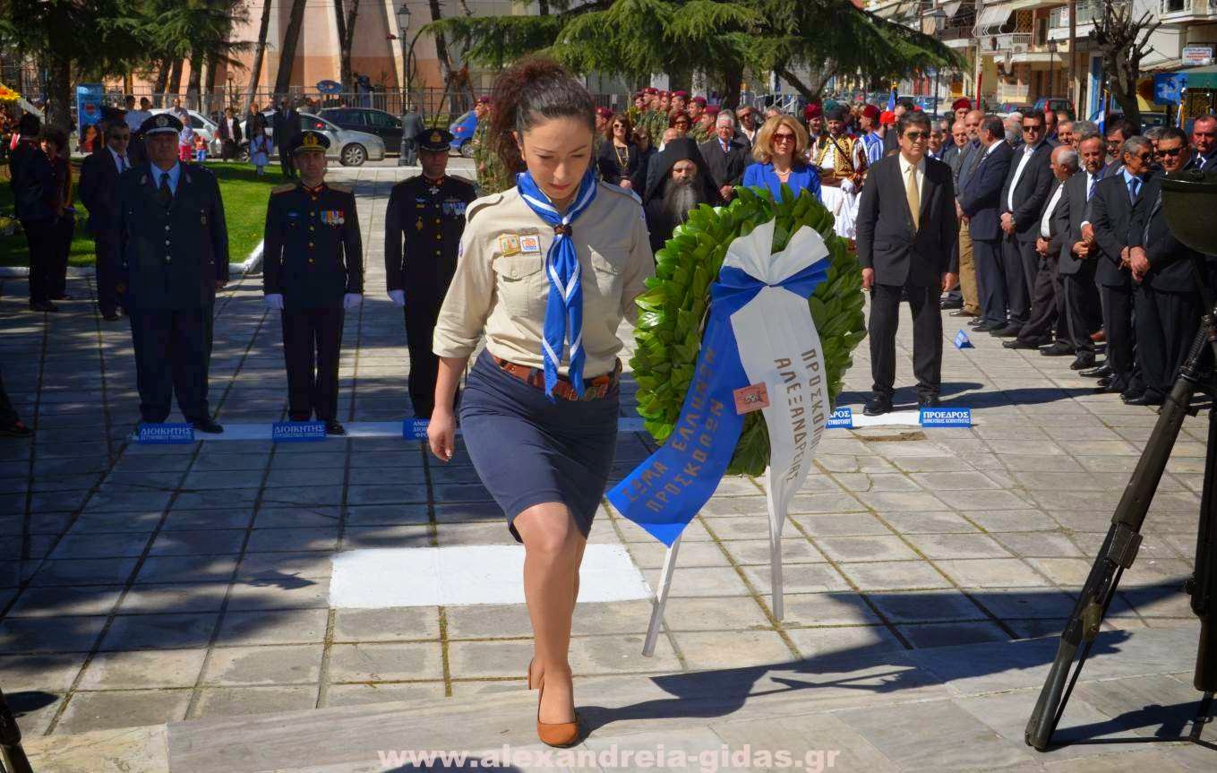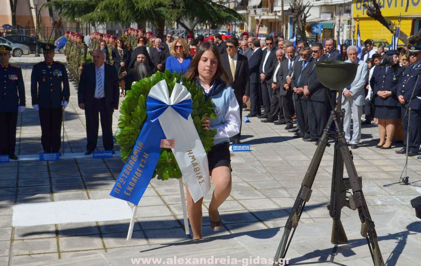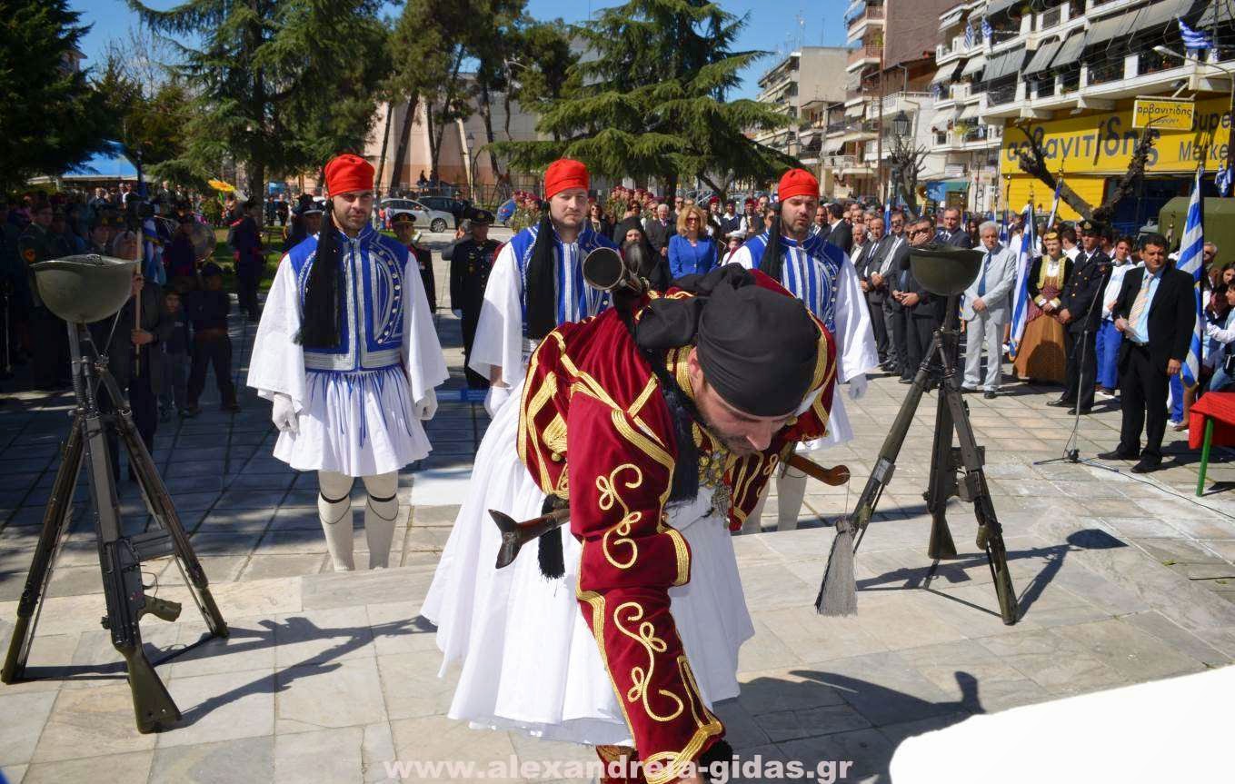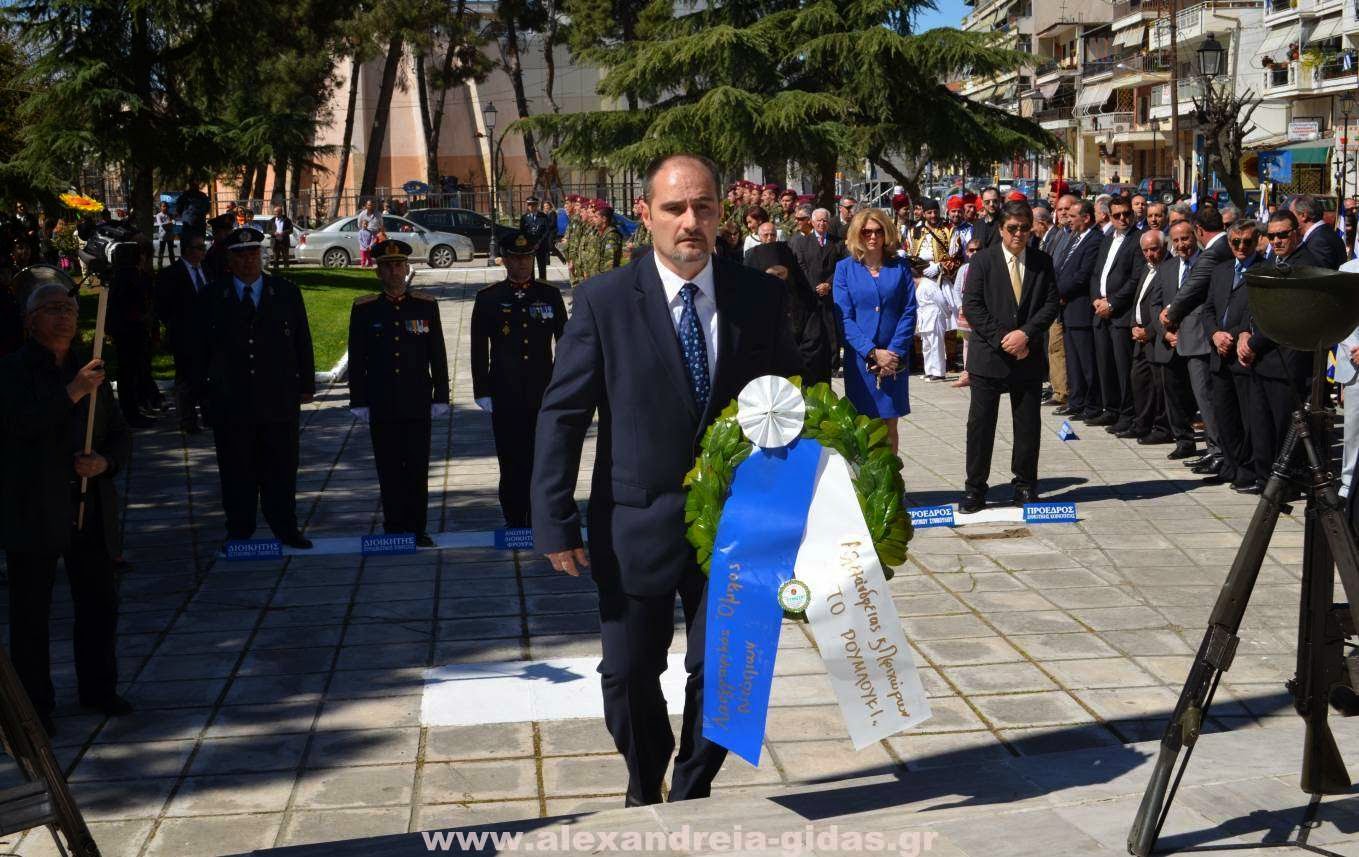 Με κάθε επισημότητα και λαμπρότητα πραγματοποιήθηκε το πρωί της Τρίτης 25 Μαρτίου η κατάθεση στεφάνων στο άγαλμα του Ηρώου στην Αλεξάνδρεια.