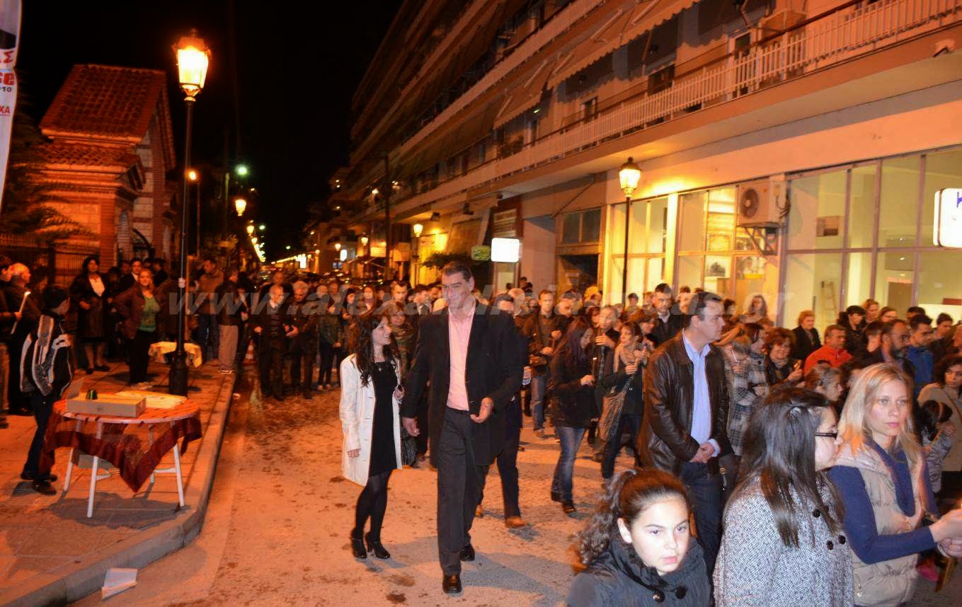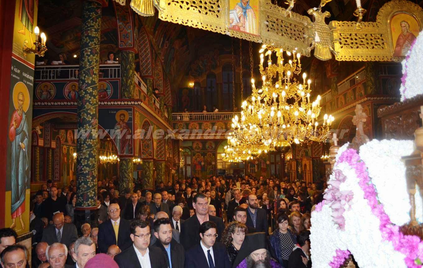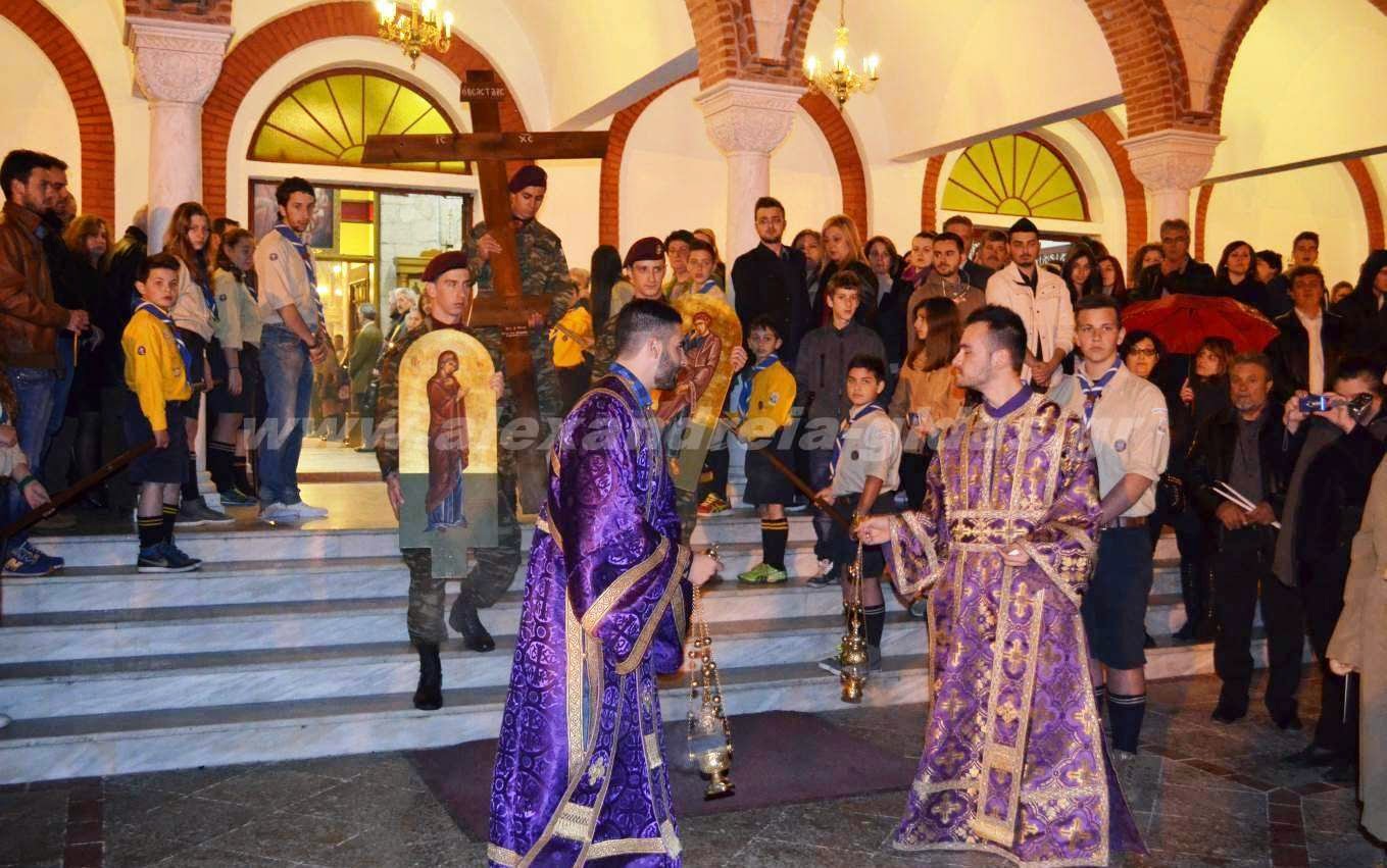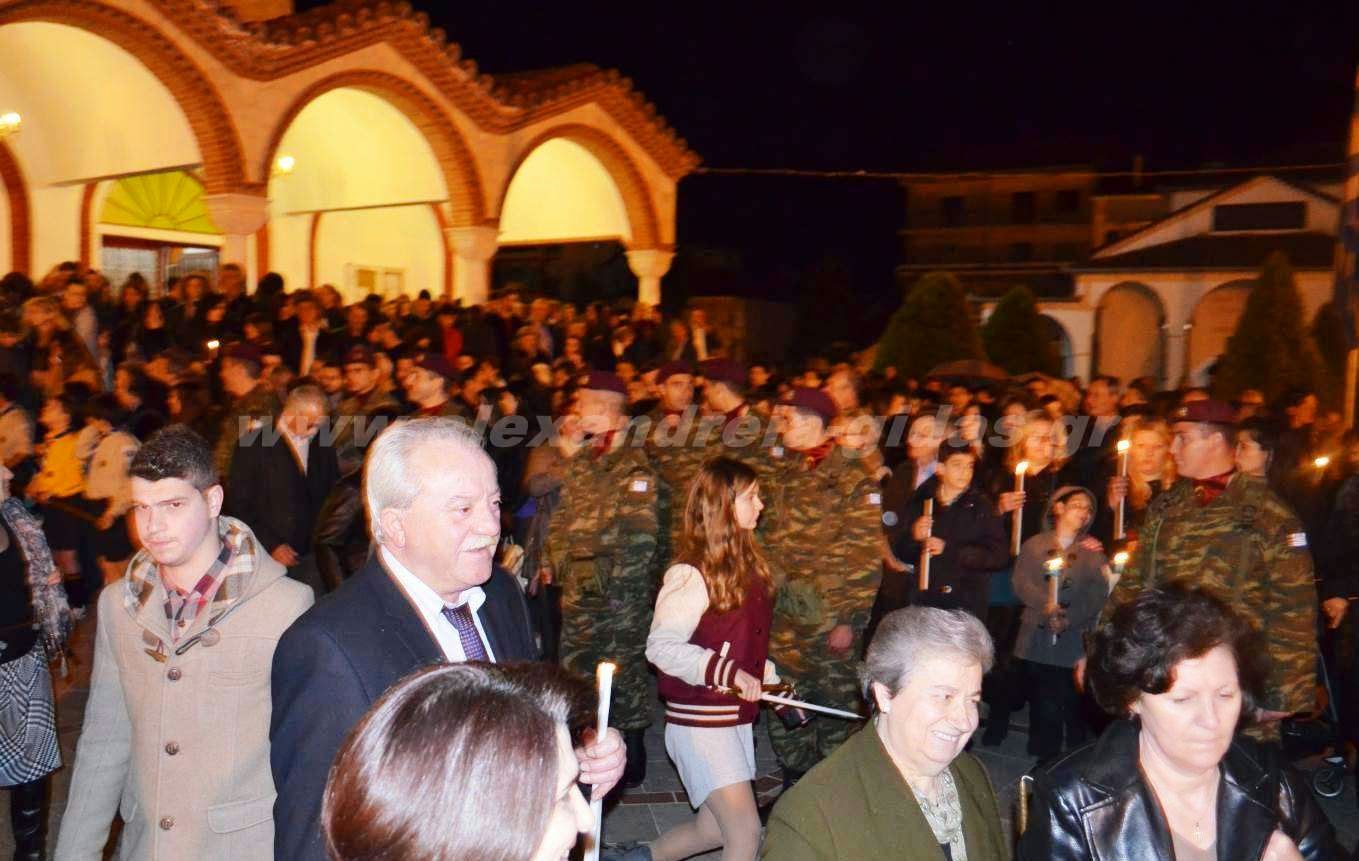 Με μεγάλη προσέλευση κόσμου πραγματοποιήθηκε και φέτος η περιφορά του Επιταφίου στον Ιερό Ναό Κοιμήσεως της Θεοτόκου στην Αλεξάνδρεια. Σε σύγκριση με την περσινή περιφορά που οι θερμοκρασίες ήταν σε υψηλά επίπεδα, φέτος εκτός από το κρύο υπήρξε και ψιλόβροχο το οποίο παρόλα αυτά δεν πτόησε τους αρκετούς συμπολίτες μας οι οποίοι κρατώντας κεριά ακολούθησαν την περιφορά του Επιταφίου στους δρόμους της Αλεξάνδρειας.