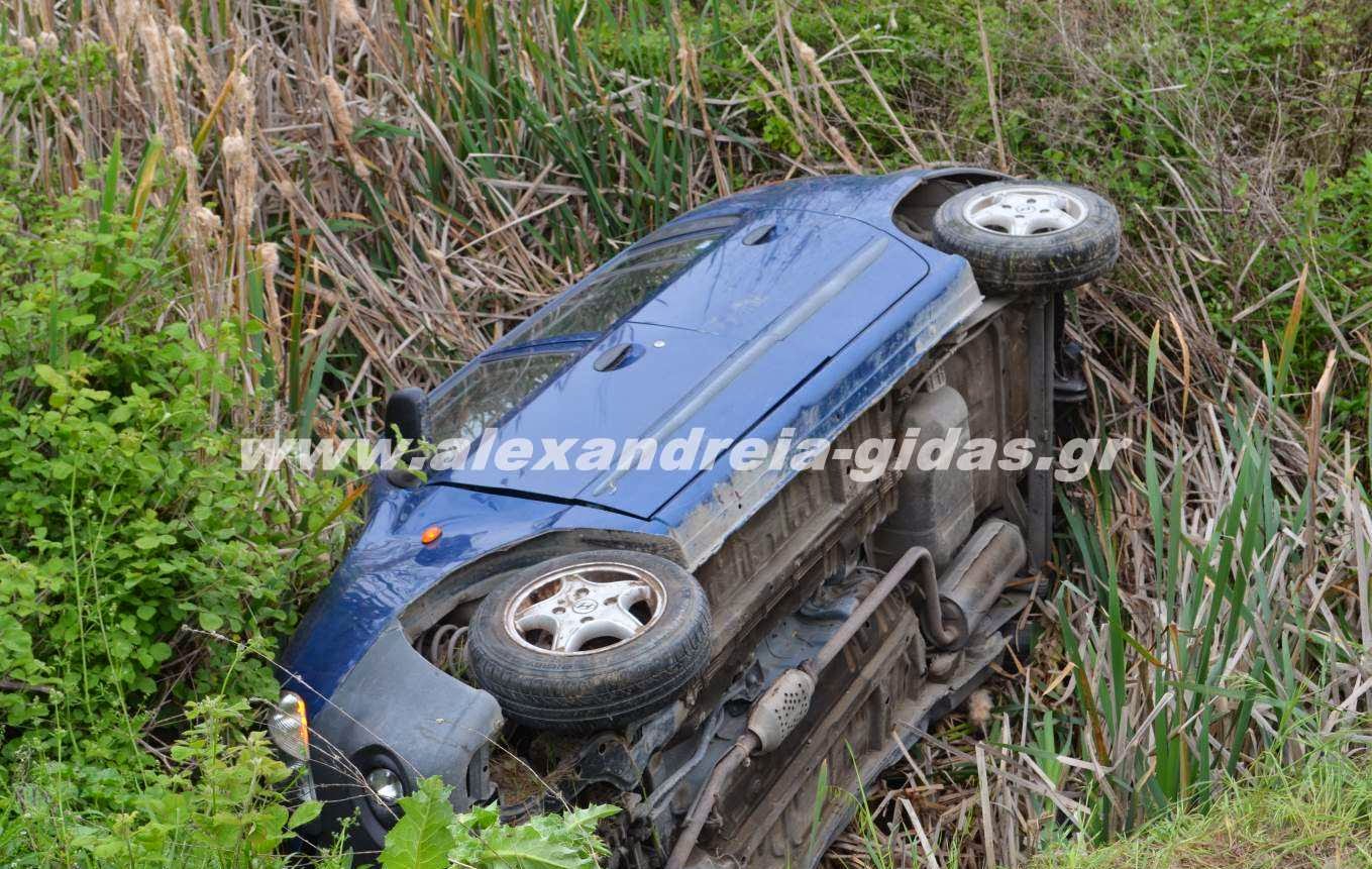 Σε διασταύρωση δύο Ι.Χ. αυτοκίνητα συγκρούστηκαν με αποτέλεσμα το ένα από τα δύο οχήματα να βρεθεί στο παράπλευρο κανάλι.