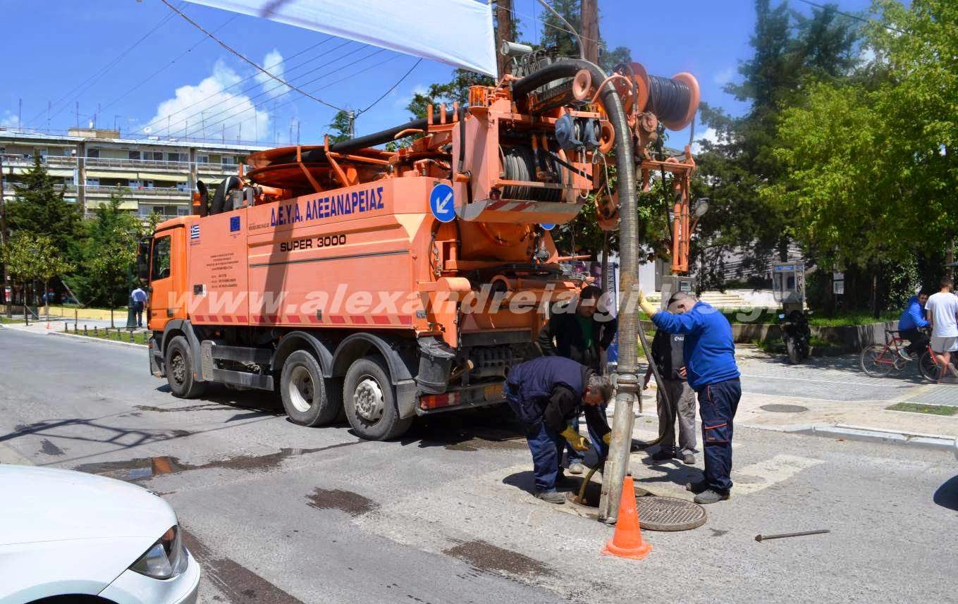Το συνεργείο της ΔΕΥΑ Αλεξάνδρειας βρίσκεται αυτήν την ώρα (14:23) στο κέντρο της Βετσοπούλου μπροστά στα καφέ του πεζόδρομου.
