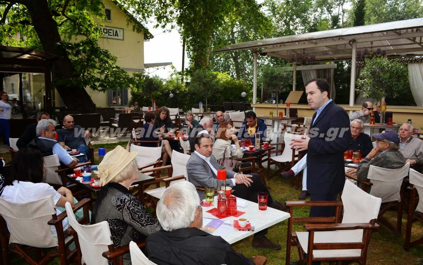 Στο καφέ Σταθμός στην Αλεξάνδρεια βρέθηκε το πρωί της Δευτέρας ο ευρωβουλευτής και πρόεδρος του κόμματος “Έλληνες Ευρωπαίοι Πολίτες” Γιώργος Χατζημαρκάκης. Τον κ. Χατζημαρκάκη προλόγισε ο υποψήφιος ευρωβουλευτής Στέφανος Φουρτουνίδης με καταγωγή από το Πλατύ Ημαθίας.