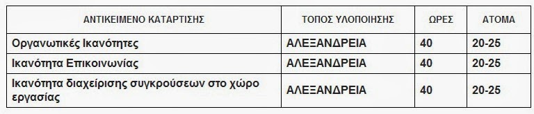Το Κ.Α.ΕΛ.Ε. Παράρτημα Αλεξάνδρειας, μέλος της Ένωσης Φορέων ( ΙΜΕ ΓΣΕΒΕΕ, ΙΝΕ ΓΣΕΕ, ΙΝΕΜΥ ΕΣΕΕ, ΙΕΚΕΜ ΤΕΕ ΑΕ, ΚΕΚ ΓΣΕΒΕΕ, ΚΕΚ ΙΝΕ ΓΣΕΕ, ΚΑΕΛΕ ΕΣΕΕ), διοργανώνει την περίοδο Ιανουάριος – Σεπτέμβριος 2014, προγράμματα επαγγελματικής κατάρτισης εργαζομένων και αυτοαπασχολούμενων επιχειρήσεων όλων των κλάδων και τομέων της οικονομικής – επιχειρηματικής δραστηριότητας ως εξής: