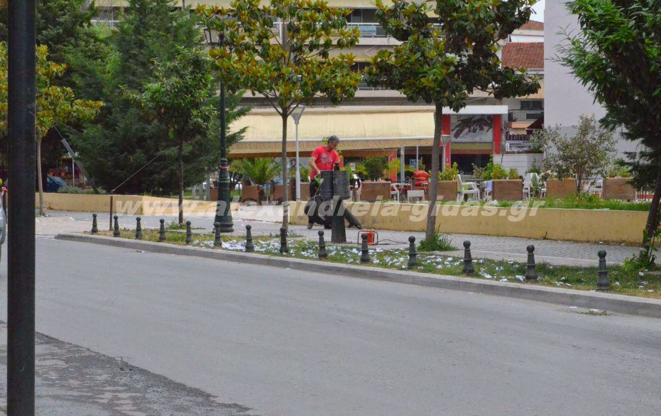 Τους ανθρώπους του εκλογικού κέντρου του Παναγιώτη Γκυρίνη είδαμε το πρωί να καθαρίζουν τα χαρτάκια και τα σκουπίδια που έπεσαν στον χώρο της κεντρικής χτεσινής ομιλίας του υποψηφίου δημάρχου Αλεξάνδρειας.